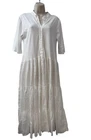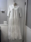 Perfect condition. Based on measurements it is size M/L. Please measure the pit to pit on another dress that fits you well to see if 17.5” is your size. This elegant Etici white linen maxi dress, crafted in Italy, is a timeless piece for any wardrobe. The dress features a button-front design, giving it a classic and versatile look. With a relaxed, tiered silhouette and 3/4 sleeves, it’s perfect for warm-weather occasions or layering with a cardigan for cooler days. Made from 100% linen, this dress offers a lightweight and breathable feel, ensuring comfort throughout the day. The high-quality Italian craftsmanship shines through in every detail, making it a chic choice for a casual day out or a special event. In excellent condition with no visible flaws. Etici dress, women’s white dress, linen maxi dress, button-front dress, Italian dress, tiered dress, summer dress, breathable dress, casual maxi dress, 3/4 sleeve dress, size L