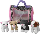 Etna Cat Play Set with Sounds – 5 Piece Set Includes 4 Small Cat Stuffed Animals Plus Carrier with Handle – These Interactive Toys are Ideal for Fun and Imaginative Play