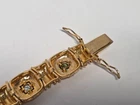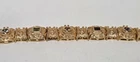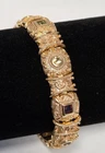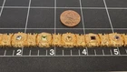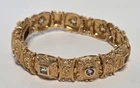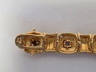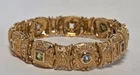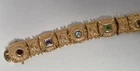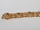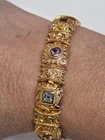 Etruscan Revival Gold Over Sterling Silver Gemstone Bracelet 7" 925 Panel 1/2"w -vintage bracelet -Etruscan Revival fancy panel gold over Sterling links, bezel set with assorted genuine gemstones -possibly Ross-Simmons, signed 925 China, tested as Sterling Silver -box and tab clasp closure with fold over side bars -approximate measurements: 7" long x 1/2" wide - very good condition, may have very minor wear from use -shipped by USPS Mail with Delivery Confirmation, Signature may be required -buyer pays shipping for returns, 14 day returns