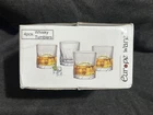See pictures for condition. Elevate your whisky drinking experience with these Europe Ware Whisky Glass Tumblers. The set includes four cylinder-shaped tumblers made of high-quality glass material. Each tumbler has a capacity of 6 oz and stands at a height of 4 inches. The clear-colored tumblers are perfect for serving your favorite whisky without any personalized design. They are easy to clean and dishwasher safe, making them a convenient addition to your kitchen/bar collection. Whether you are a fan of single malt or a classic cocktail, these tumblers are sure to impress.