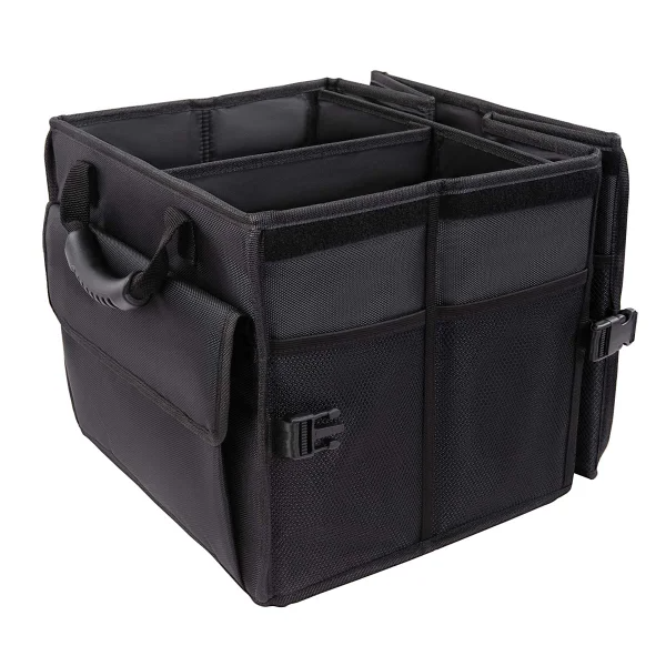Eurow Automotive Car Trunk Organizer WR Foldable Storage Collapsible Box Bag Features: Easy Grip Handles Water-Resistant Easy to Clean Product Details Eurow’s Automotive Trunk Organizer makes organizing your car easy. There is plenty of room and pockets to store all your travel gear and more. Ideal for road-side emergency equipment, tools, car care accessories, sporting equipment, groceries, & more! Say goodbye to a cluttered car. Features: Built to Last: Made with 1680D polyester oxford material, water-resistant, durable, and simple to clean. Durable handles support heavy loads and make transporting more comfortable. Multiple Storage Compartments: There are 2 removable dividers, creating 3 large compartments to sort belongings. 1 large pocket with a flap closure and 4 smaller mesh accessory pockets are perfect to store smaller items. Bonus Features: A non-slip textured bottom prevents the organizer from sliding around while in use. The lid is removeable for larger items or secured with hook & loop closure to further secure items or provide a cleaner look. Customizable: This organizer can easily fold flat for convenient storage when not in use or can be partially collapsed with buckles for a customized size. Perfect for your truck, car, SUV, garage, closet and more! Includes: Contains one Automotive Organizer Items pictured in the Automotive Organizer are not included and are shown only for scale. Specifications: Dimensions: 60 cm × 35.5 cm × 30.5 cm (23.6 in. × 14 in. × 12 in.)