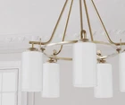 Eury 5-Light Chandelier Pendant Ceiling Light Fixture Modern Gold Etched Glass Shade Adjustable Height for Hallway, Entryway, Passway, Dining, Bedroom, Kitchen, Balcony Living Room Quality: Gold design height adjustable with high quality workmanship. Voltage: 110-120V. Occasions: Perfect for kitchen, dining room, living room. Suitable for both flat and sloped ceiling. Design: Modern style features a stunning gold finish. Etched glass shades capture gorgeous glow. Bulb Requirements: Uses (5) LED, CFL, or up to 100W traditional incandescent medium bulbs. Complete industrial feel with Edison bulb. To complete the dimmer function (if you have a wall dimmer switch), please use dimmable bulb. Bulb not include. Easy Installation: All mounting hardware and instruction included. No Pain Assembly!