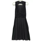 Brand: Evan Picone Country/Region of Manufacture: Vietnam Neckline: V-Neck Occasion: Business, Casual, Party/Cocktail, Travel, Wedding Department: Women Personalize: No Fabric Type: Knit Size: 8 Garment Care: Hand Wash Theme: 60s, 70s, 80s, Classic, Sexy Features: Stretch UPC: Does not apply Character: NA Handmade: No Size Type: Regular Dress Length: Knee Length Color: Black Pattern: Polka Dot Style: Fit & Flare Sleeve Type: NA Material: Polyester Vintage: No Accents: Ruched waist, Textured gold matted dots, Halter Neckline gtin13: Does not apply Season: All Seasons Closure: Pullover Sleeve Length: Sleeveless