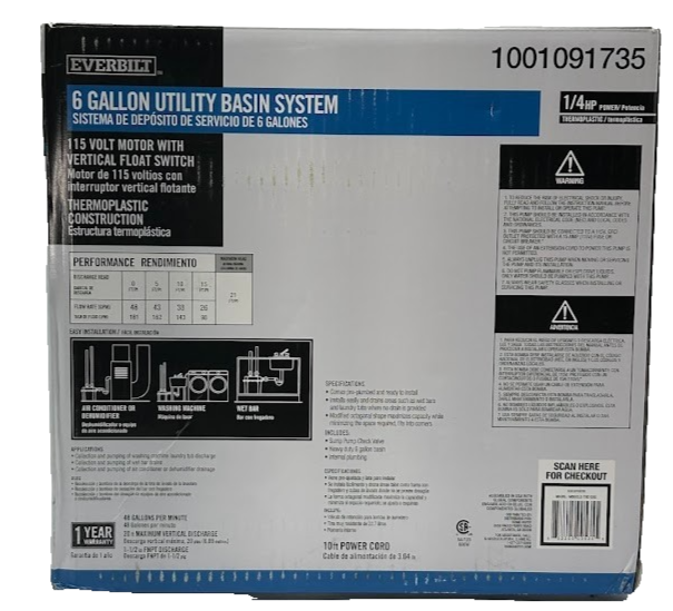 Everbilt 1/4 HP Pre-Plumbed Sink Tray System Sump Pump | 6 Gal Basin Kit About This Item The Everbilt 1/4 HP Pre-Plumbed Sink Tray System is a complete, ready-to-install solution for draining sinks and appliances where a direct drain is not available. Ideal for laundry rooms, wet bars, AC units, and dehumidifiers, this compact system arrives pre-plumbed for fast setup and fits neatly into corners thanks to its space-saving octagonal basin design. The powerful 1/4 HP pump delivers up to 2,850 GPH for fast, reliable drainage while operating quieter and more efficiently than previous models. Key Features Pre-plumbed system arrives ready for installation Powerful 1/4 HP automatic sump pump with up to 2,850 GPH pumping capacity Includes heavy-duty 6-gallon basin , check valve, and pump Modified octagonal shape maximizes capacity while minimizing floor space Fits easily into tight corners and utility areas Ideal for wet bars, laundry tubs, washing machines, AC, and dehumidifier discharge 40% quieter and 42% more flow than the previous generation Some light assembly required for shipping protection Our Guarantee We take great care to inspect all items and ensure they are accurately described. Should you have any issues with your purchase, please let us know immediately. We are committed to resolving any concerns promptly and to your satisfaction. Our small business truly appreciates your patronage. everbilt sink tray sump pump system 1/4 hp pre plumbed utility pump 6 gallon basin wet bar laundry tub dehumidifier condensate pump corner sump basin drainage kit automatic pump system