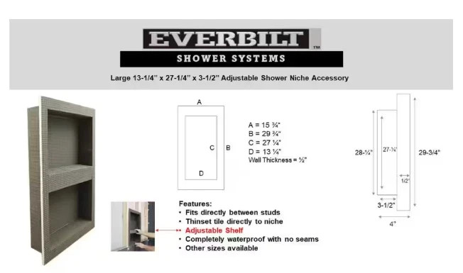 Long Lasting Niche Shower 25 inch x 13 inch Durable Bathroom Wall Niche Inserts