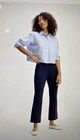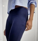 Elevate your wardrobe with these Everlane Bi-Stretch Flare Pants. These dress pants/sweatpants feature a classic solid blue color, seam down front, and a mid-rise fit with an elastic waist and drawstring closure. The pants are made of a comfortable and stretchy knit fabric with a heavyweight and wrinkle-resistant design, making them perfect for travel, casual wear, or business settings. The pants come in a size S and have a 27-inch inseam. They also feature pockets for added convenience. These pants are machine washable and were made in Vietnam with the highest quality materials including 38% Modal, 4% Elastane, and 58% Cotton. Upgrade your wardrobe with these stylish and versatile pants from Everlane. Retails for $98