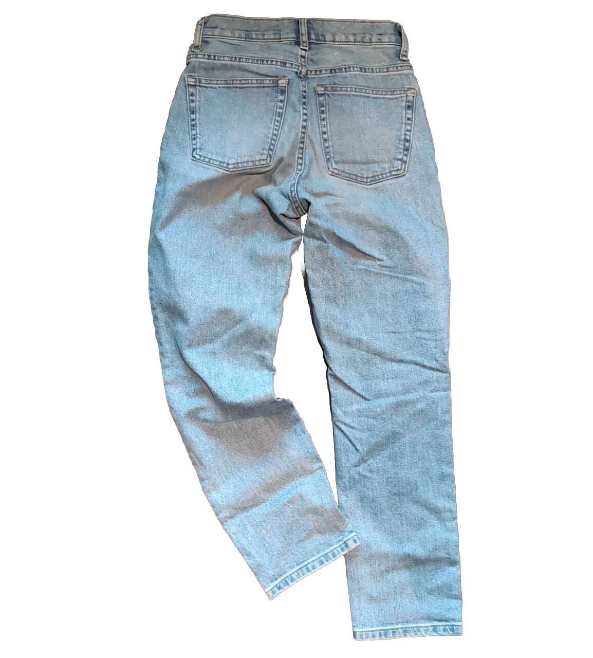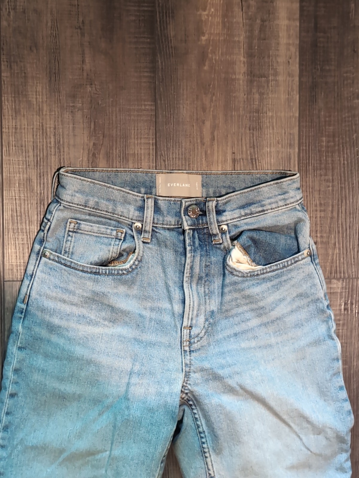 Elevate your denim game with these Everlane High Rise Straight Jeans. Crafted from 100% cotton denim fabric in a medium wash, these jeans feature a button fly closure and a relaxed fit. The mid-rise style and distressed details give them a trendy edge, making them perfect for casual outings. These jeans come in a classic blue color and are available in a women's size 24. The Everlane Boyfriend model is designed to fit regular size types and is ideal for those who love versatile and stylish denim. Add these jeans to your wardrobe and enjoy the comfort and style they bring.
