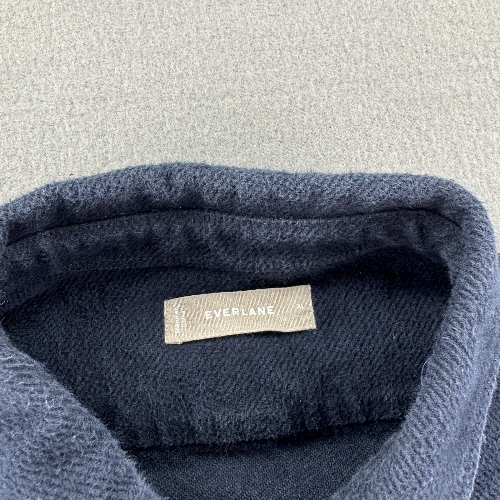 Everlane Shirt Jacket Mens Extra Large Navy Blue Brushed Cotton Overshirt Shacket Condition: Gently worn, no visible flaws. All buttons intact and functioning. Minimal signs of wear. Brand: Everlane Size: Extra Large (XL), tag shows XL Color: Navy Blue Design: Shirt jacket with button front, two button-flap chest pockets, collared neckline, button cuffs Material: Brushed cotton for warmth and softness (exact composition not shown in images) Chest (pit to pit): approximately 25 inches Back length (collar seam to hem): approximately 30 inches Classic shirt-jacket (shacket) style can be worn layered or as a lightweight jacket Timeless, casual look versatile for every season