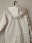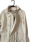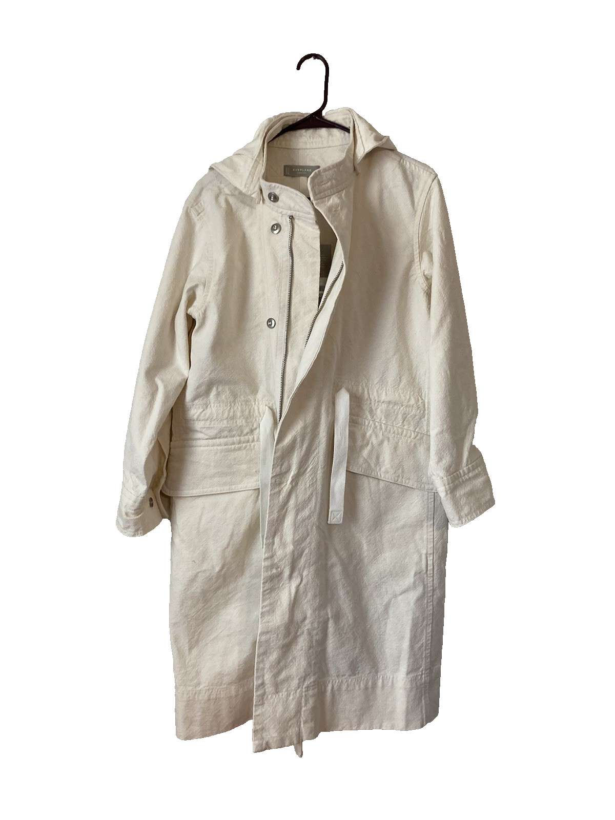 Inspired by vintage military jackets this utilitarian layer is ready to take charge in style. Part of our Canvas Collection of modern workwear the Canvas Cotton Organic Parka features a removable hood front zipper recycled metal button closure cinchable waist and deep welt pockets. To create a subtle texture in the heavyweight 100% OCS-certified organic cotton fabric we followed a centuries-old Japanese salt shrinking process and then garment dyed it. Due to the natural effects of garment dyeing you'll find each piece in the collection is slightly different creating a soft vintage look. Organic cotton uses crop rotation cover crops and organic fertilizers instead of toxic chemical fertilizers or pesticides—which means cleaner water lower water usage lower pesticide use healthier soil and a safer working environment for cotton farmers compared to conventional cotton. Women's Canvas Organic Cotton Parka by Everlane in Bone White, Size S