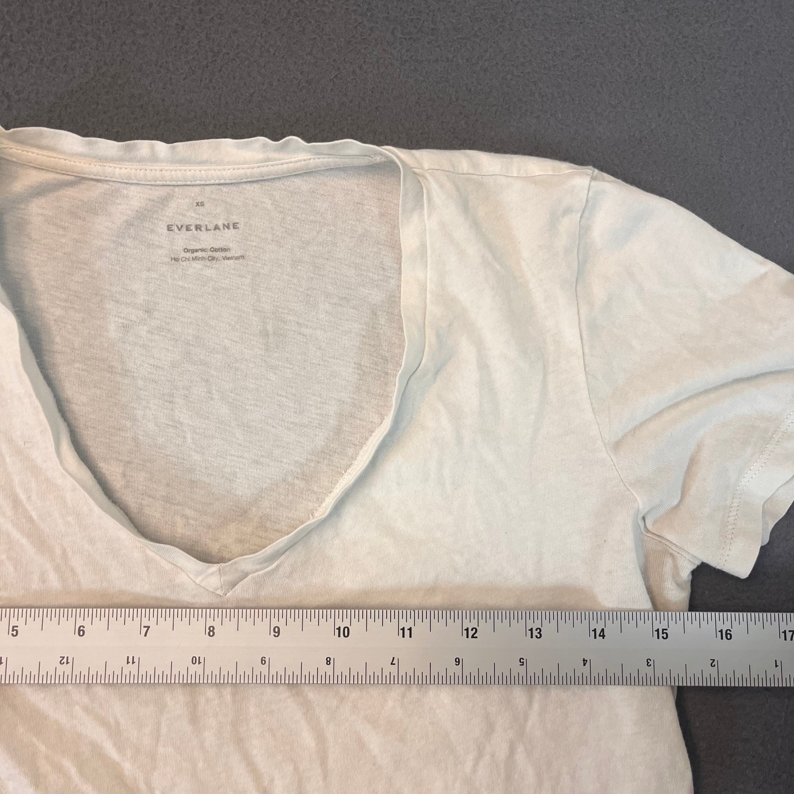 The Everlane Women's XS White Organic Cotton V-Neck Short Sleeve Tee Top is a versatile and stylish addition to any casual wardrobe. Made from lightweight and breathable knit cotton fabric, this pullover shirt is perfect for all seasons, whether it's a warm summer day or a chilly winter evening. The V-neckline and short sleeves offer a comfortable fit, while the solid white color makes it easy to pair with any outfit. Designed by the popular brand Everlane, this classic and minimalist tee is a timeless piece that should be a staple in any woman's closet.