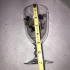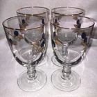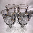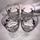 This is a set of 4 beautiful glass goblets by Royal Worcester in the pattern Evesham Gold. These goblets all feature the multi-colored Plum design complete with branches and leaves. They stand approximately 7 inches tall, have a width at the top of 3 1/2 inches and a base width of approximately 3 3/8 inches. They comfortably hold 14 ounces of your favorite beverage. Hand washing is recommended due to the gold trim and fruit graphics. Goblets are in good pre-owned condition. Gold trim shows very little wear. Original owner must have washed with a wedding ring on as one of the glasses has a couple of scratches on the inside edge (see last photo). Plum design also shows very little signs of wear. Please review and enlarge all photos for additional details, views and measurements. Shipped via USPS Priority Mail.