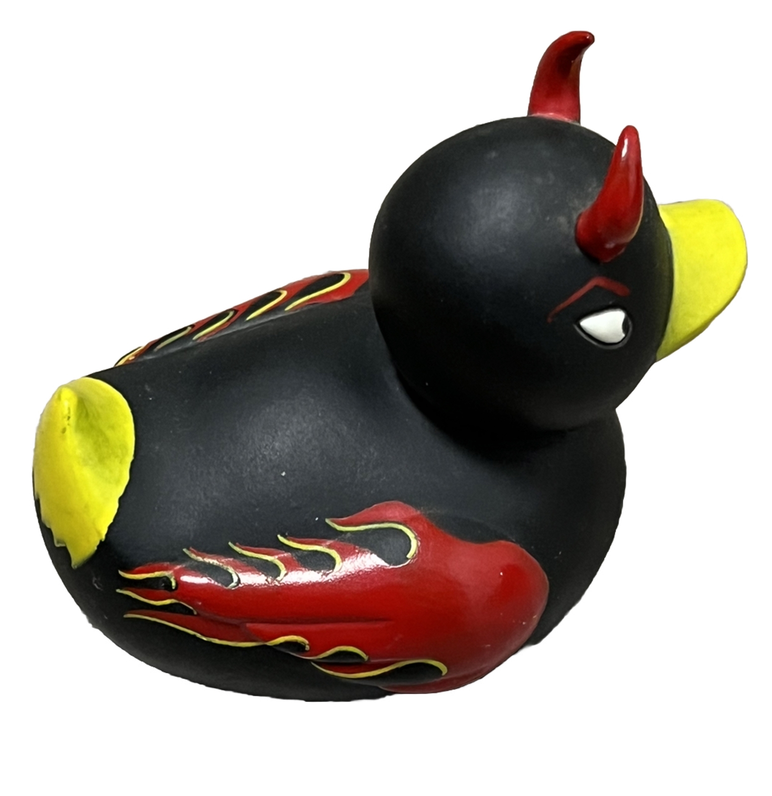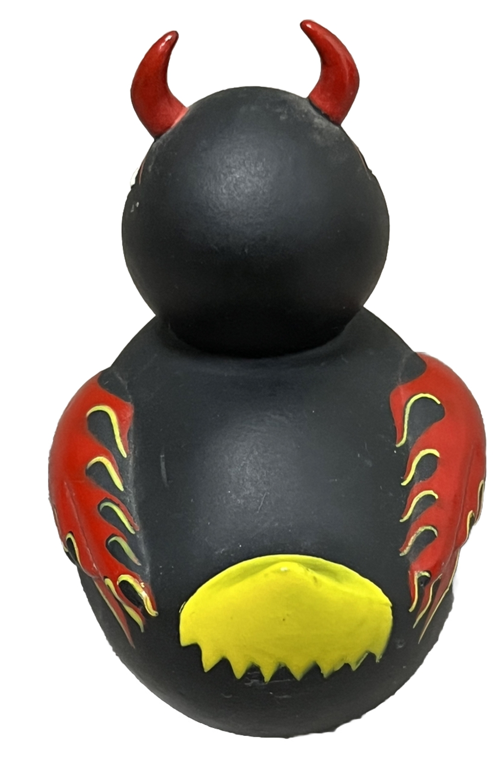 Vintage 2000 Accoutrements Devil Duckie Rubber Duck Toy Black Red Flames Evil Ducky 3.5 inches Pre-owned indoor display only