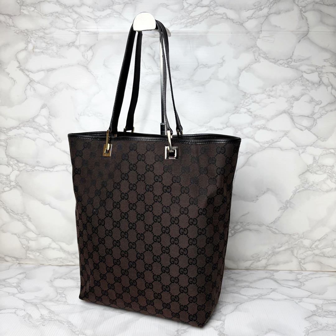Gucci GG Canvas Handbag Dark Brown Excellent Condition Japan Import