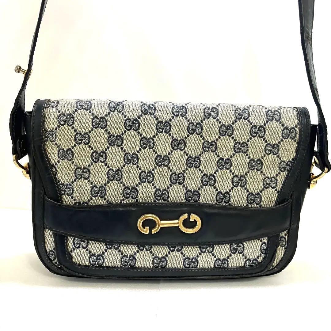 Excellent Condition GUCCI Shoulder Bag Supreme Navy GG Pattern 2way