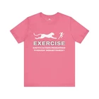 Exercise Text Printed T-shirt, the perfect attire for those who prioritize fitness and activity in their daily routine. Crafted from high-quality, breathable fabric, this tee combines comfort and style to keep you motivated during your workouts. Overview: This classic unisex jersey short sleeve tee fits like a well-loved favorite. Soft cotton and quality print make users fall in love with it over and over again. These t-shirts have-ribbed knit collars to bolster shaping. The shoulders are tapered for a better fit over time. Dual side seams hold the garment's shape for longer. Fabric: Made with 100% Airlume combed and ring-spun cotton, a lightweight fabric (4.2 oz/yd² (142 g/m²)) that is easy to layer, breathable. Perfect for active and leisure wear. Fit: The retail fit that is perfect for casual and semi-formal settings. The crew neckline adds a classic, neat style that's perfect for accessorizing. Fabric blends: Ash and Heather Prism colors - 99% Airlume combed and ring-spun cotton, 1% polyester; Heather and Solid Blend colors - 52% cotton, 48% polyester; Athletic Heather and Black Heather - 90% cotton, 10% polyester.