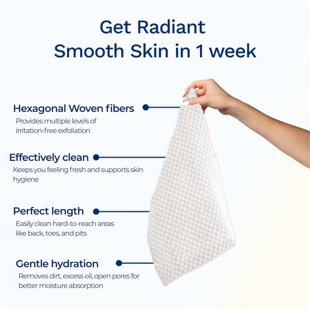 Store New Arrivals Add to Favorite View Feedback Contact Exfoliating Washcloth Face & Body Scrub Towel - Japanese Exfoliating Towel with Hexagon Fibers, Body Scrubber with 2 Sides for Scrubbing & Washing, Extra Long Body Towel (White) Description Style Body Towel Number of Items 1 Color White Product Dimensions 47 x 10 x 0.2 inches; 2.12 ounces Material Polyester Size 1 Count (Pack of 1) Reveals Softer & Smoother Skin - Get silky soft skin that glows with our body exfoliating scrub towel! It removes dead skin & impurities while stimulating skin cell renewal to give you smooth skin that's irresistibly soft Improves Skin Texture - Features hexagon woven fibers that offer 2 levels of exfoliation. One side gently washes off dirt, oil, & grime, while the other sloughs off dead skin cells leaving you with a radiant complexion! No Musty Odor & Dirt Buildup - Unlike a loofah exfoliating body scrubber, our body exfoliator towel has Silver-infused fibers that eliminate unpleasant odor & stop dirt buildup. Reusable for Long-Lasting Use - Our shower scrub & bath scrub towel will last 20x longer than a typical body sponge or shower scrubber for body. It's extra long to let you scrub hard-to-reach areas like your back! Our Latest Self-Care Necessity: Elevate your regular shower or bath to a tranquil spa session with our face and body exfoliator scrubber towel! Product description 1 Exfoliating Experience 2 Smooth Skin Steps for better use Step 1 Let the hot water wet and soothe your skin. Step 2 Apply our special Sima Charcoal Body Wash or your own soap on the exfoliating towel and scrub over the skin. Step 3 Use the length of the towel to scrub your back, elbows, knees and feet. Step 4 Wash off with plenty of water. Matches Perfectly with These Items Face Exfoliating Towel Get Glowing, Smooth, Silky-Soft Skin With This Japanese Hexagon Weave Face Exfoliating Towel. Body lotion Nourish and Revitalize Sensitive Skin with the Power of Hyaluronic and Salicylic Acids. Body wash Deeply cleanses, eliminating dirt, oil, and sweat. Infused with Charcoal for purity and Salicylic acid for acne control. Disposable Face Towels Stop using your bathroom towels to dry your skin and use our face towels! This ultra-soft single-use face towel is ideal for all skin types. ABOUT US We offer the best prices around on high quality products. Our E-store includes media such as books, movies, music and games while offering electronics, toys, sporting apparel, clothing, tools, general home, garden items and more. SHIPPING We are always working hard to ensure your package arrives as soon as possible. Please understand that some factors like weather, high postal traffic, and the performance of shipping companies are outside of our control. We offer free shipping to the lower 48 states and ship within 2 business days of payment, usually sooner. We do not accept P.O. Boxes. Please provide a physical address. RETURNS We offer a 30-Day Return Policy on items which you are not completely satisfied with. You have the option for a full-refund or an exchange of the item. No returns are available on items shipped outside of the USA. PAYMENT We accept PayPal. CONTACT US This page content is yet to come Please ad us to your favorite seller and visit again later Thank You CUSTOMER SATISFACTION We try our very best to make sure every customer is completely satisfied. If there's a problem, message us! We're happy to help.