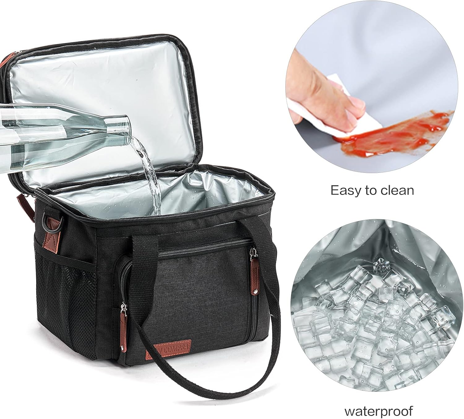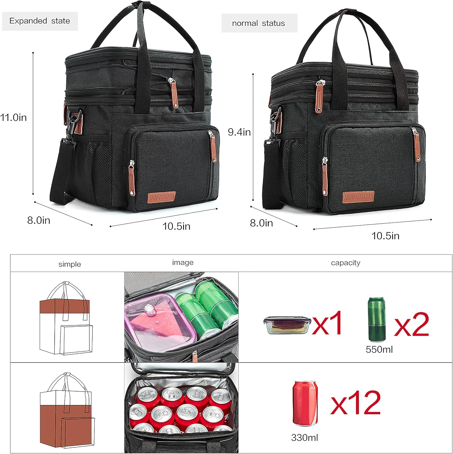 Store New Arrivals Add to Favorite View Feedback Contact Lunch Bags for Men Women, Black Adult Lunch Box for Work, Expandable Description Item model number 8263 Style Work Capacity 16 Liters Number of Items 1 Pattern Floral Country of Origin China Theme Food Number of Compartments 2 Material Nylon Age Range (Description) Adult Item Form Bag Included Components Bag Closure Type Zipper Item Weight 1.3 Pounds Special Feature Leak Resistant Color Black Shape Fruits Recommended Uses For Product Office Product Dimensions 10.5"D x 8"W x 11"H Product Care Instructions Hand Wash Only 🍴 EXPANDABLE & LARGER CAPACITY & LIGHTWEIGHT - The lunch bag Size :9.4 ×8.0×10.5 inch; After expand size is 11 ×8.0×10.5 inch. Spacious lunch tote can easily fit all your snacks, drinks, sandwiches, fruits, or vegetables, you can take it to your office, or pack a healthy snack for your family or have a delightful weekend picnic. 🍴 Thickened Inner & Double Insulation - It is leakproof, inside soft PEVA liner with heat-welded seams prevent flexible liner leaks, also easy to wipe clean. The lining is made of insulating material, which can keep your food hot or cold. The inner lining of the front pocket is also made of EVA, so you can put the used tableware into it without worrying about cleaning. The portable lunch tote packs your salad, soups, sandwiches, fruits which brings nutrition. 🍴 Multi-Functional - You can put lunchboxes in the main compartment to keep warm or fresh. 1 side net pockets can put the bottle, the other side is a napkin pocket. The front has 2 zipper pockets and one velcro pocket can put keys, wallet, phone, or other small things. The back has 1 velcro pocket can put other things. The inside of the main front zipper pocket is made of PEVA which is easy to clean. Besides, the main compartment has two-part, the top compartment also has one mesh bag for you. 🍴 Easy to clean & Long-term Preservation - Zipper complete open design is easy to put in and out, easy to clean inside. Double Insulated lining can keep foods and drinks warm & fresh for at least 6.5 hours and it is easy to wipe clean. Besides, you could put your food and fruits into the bag directly. Built-in foam provides great protection to your containers, foods, and drinks. 🍴 Multi Purpose - You can take it with you to the office, go on day trips, beach and sports, or pack a healthy snack for outdoor activity. Suitable for men and women. Stylish design makes it can be used in many occasions as you prefer. Mom also can use it as a diaper bag to keep milk and as medications or as a casual tote bag. Product Description Brand: MOV COMPRA - Pay more attention to quality and functionality, and you will not be disappointed. MOV COMPRA is a local brand in the US established in 1992. Headquartered in California, USA. In order to create greater convenience and happiness for people's lives. We pay great attention to the customer's experience. After receiving feedback from many parties, the lunch bag has been upgraded. The upgraded lunch bag has more functions, and the detailed design of the appearance makes the lunch bag more fashionable. Core Features ZIPPER - All zipper buckles are added with metal nails, looking more advanced. SIDE POCKET - The mesh bag on the other side was changed to a paper towel bag, which is more human nature. FRONT POCKET - The inside of the front pocket is changed to washable aluminum foil so that used tableware can be placed, reducing a lot of troubles. HANDLE - A buckle is added to the handle, so it is not easy to scatter. ONE PACKAGE FOR DUAL USE - This bag can be not only a lunch bag but also a breast pump bag. 100% LEAKPROOF - Unique technology the lunch bag is 100% leakproof. SHOULDER STRAP -The shoulder strap adopts a higher density webbing with a better texture. MORE STORAGE SPACE - MOV COMPRA lunch bag has 6 external pocket. (1 front Velcro pocket, 2 front zipper pocket,2 side pocket, 1 back pocket) Multipurpose Side Pocket The newly upgraded side pocket is designed by Movcompra. The outer layer with a hole is designed to fit a napkin for quick access. Simply adjust the central compartment to make it a regular pocket for other essentials. Two-pocket functions are easily realized through a compartment. Maximize your pocket space. No longer worry about falling out of the hole when you put something in the napkin pocket. Material upgrade - The webbing of the handle and the shoulder strap is made of thicker material, which improves the tactility and is stronger, which is different from the styles on the market. Buckle - We chose a thicker buckle, which has a better load-bearing capacity and is not easy to break. Inner material - The material of the inside has been upgraded, Use of food-grade aluminum foil, thicker and the heat preservation time and service life are increased. ABOUT US We offer the best prices around on high quality products. Our E-store includes media such as books, movies, music and games while offering electronics, toys, sporting apparel, clothing, tools, general home, garden items and more. SHIPPING We are always working hard to ensure your package arrives as soon as possible. Please understand that some factors like weather, high postal traffic, and the performance of shipping companies are outside of our control. RETURNS We offer a 30-Day Return Policy on items which you are not completely satisfied with. You have the option for a full-refund or an exchange of the item. PAYMENT We accept PayPal. CONTACT US This page content is yet to come Please ad us to your favorite seller and visit again later Thank You CUSTOMER SATISFACTION We try our very best to make sure every customer is completely satisfied. If there's a problem, message us! We're happy to help.
