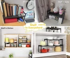 Expandable Cabinet Shelf Organizer 16~26" Stackable Kitchen Black 7.9" (D) Product Details Material: Metal Color: Black 7.9" (D) Special Feature: Heavy Duty Product Dimensions: 7.9"D x 26"W x 8.5"H Shelf Type: Expandable, Adjustable, Stackable Size – Expandable 16~26” (L) x 7.9” (D) x 8.5” (H), max height under shelf is 7.1”, height under shelf is adjustable 1.58” (40mm). The adjustable & extendable function perfect used as kitchen cabinet shelf or expandable counter shelf organizer. Multi-function - Extra space for kitchen, pantry, cupboard, books, office supplies, personal supplies. Save space for bedroom, study, sitting room, bathroom etc. tabletop. A great gift choice for your wife/husband, children, colleagues, friends, and more. Modern & Strong - Sturdy metal construction, and heavy-duty design holds 22LBS! The shelving rack for cabinet is easy to clean! Patent – Our extendable storing shelf obtained the certificate of design patent. CNIPA Patent No. ZL 2020 3 0296239.4. Product parts for expandable counter shelf have been upgraded since March 2021.