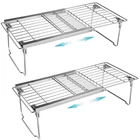 Orgneas Cabinet Shelf Organizer Rack Height: 6.3” Width: 9.5” Length: Expandable from 15.8" to 22" Color: Silver Weight: 2.7 pound Material: Heavy duty steel frame and coated rust resistant Create Extra Space Orgneas thickened kitchen organizer is especially designed to provide extra space on the counter, cooktop and tupperware cabinet etc. Versatile cabinet shelves is suitable for your different needs to store bowls, dishes, spice jars, cups, coffee, sugar and syrup bottles. Make your kitchen as tidy and neat as you wish for with Orgneas cabinet shelf racks. EXPANDABLE SHELF ORGANIZERS - Length of this cabinet organizer and storage is adjustable from 15.8" to 22", perfect for your different needs in cabinet, countertop or under sink. Foldable rack stand measures 6.3” creates perfect height space for your bowls, dishes, spice jars, cups, coffee, sugar and syrup bottles STURDY AND DURABLE - Shelf organizer is well made of heavy duty steel with delicate appearance, durable and rust resistant. Sturdy frame structure holds much weight for kitchen pantry storage PRACTICAL KITCHEN ORGANIZATION - Expandable cabinet storage shelf rack not only can be used for storing kitchen bottles in pantry countertop or cabinet, but also works well under sink or over the sink KITCHEN ORGANIZATION SOLUTION - Cabinet shelf organizer rack is the perfect solution to organize all the kitchen essentials tidy and neatly by double up your cabinet space. No more messy SHELF RACK DIMENSION - Height: 6.3”, Width: 9.5”, Length expandable from 15.8" to 22". No assembly, no tools needed.