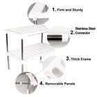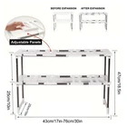 This VKKM 2-Tier Expandable Metal Shelf Organizer Rack is a versatile storage solution for your kitchen and bathroom. With an expandable metal rail that can stretch from 17 to 30 inches, this rack is perfect for under sink storage. This organizer rack is not only practical but also durable with a supported weight of 10 lbs each tier. Its space-saving design makes it suitable for cabinets, closets, or wardrobes in different rooms like the bathroom, kitchen or bedroom. Made of metal and plastic materials ensuring long-lasting use. Expandable Design: The metal rail can be adjusted to fit your space perfectly, making it ideal for various areas in your home. Stackable Tiers: Features two layers that can be stacked to maximize storage space. Removable Panels: Comes with 8 removable panels that allow you to customize the rack according to your needs. Easy Installation: Simple and hassle-free assembly process. Suitable for Various Uses: Ideal for storing clothes, home supplies, food & beverages efficiently