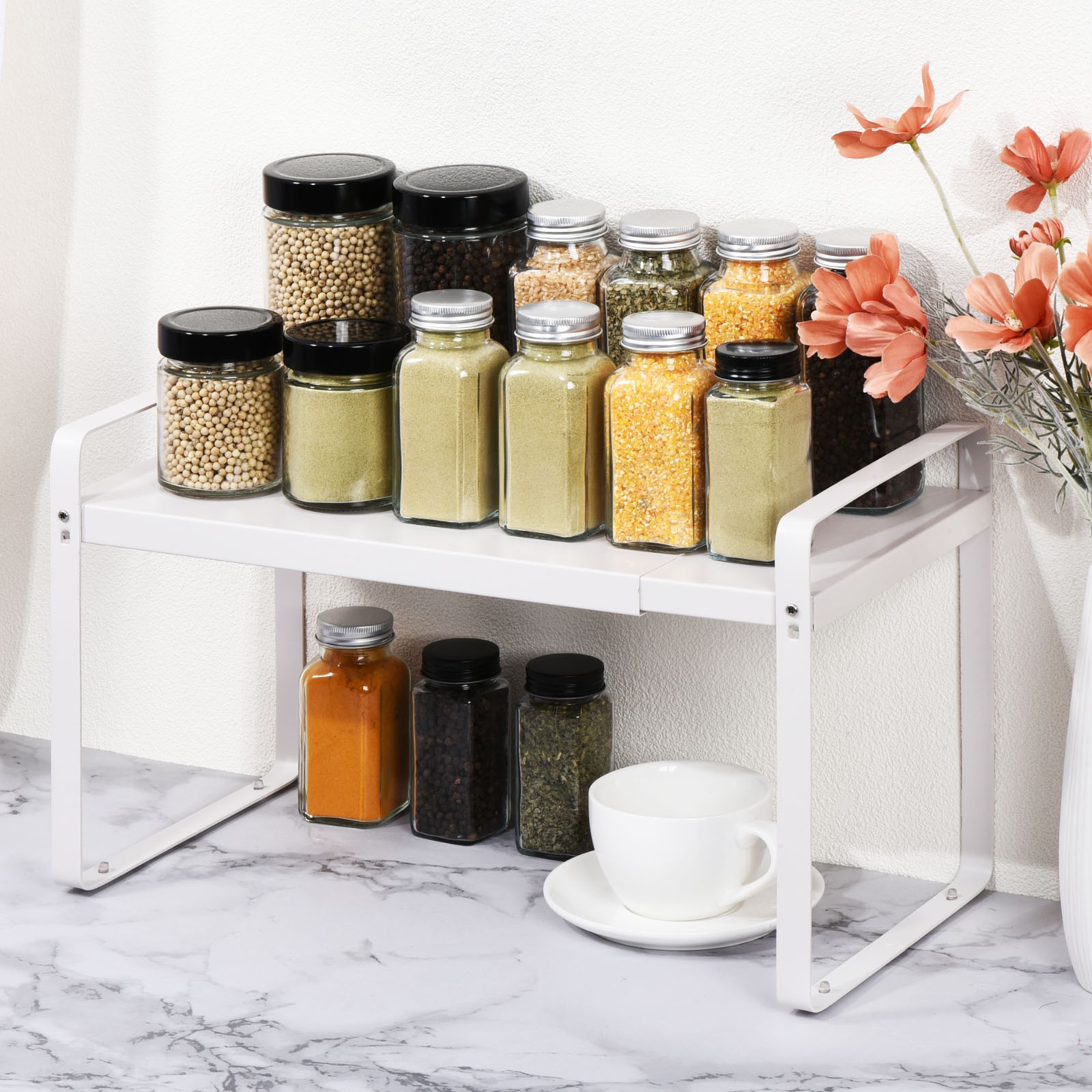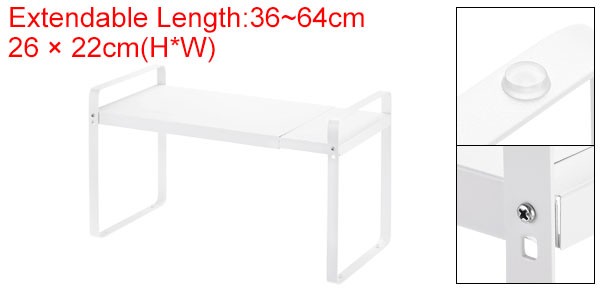 Document Iron Cabinet Shelf Organizers - Made of sturdy metal, Thicken the powder coated, strong rustproof, The smooth surface of the cabinet shelf has been polished so it does not wear out easily. There is a load-bearing rod in the middle of this shelf that is evenly balanced so it doesn't collapse inward. Expandable Cabinet Shelf Organizers - Expandable shelf organizer can vary from 14.1 to 23.6inch in length depending on how you want to arrange your space. In addition, there are two different height(7 or 9inch) options to give you more flexibility when storing kitchen items.Easy to Assemble - Please read instruction before installation. The stackable counter shelf organizer are required to complete the installation with only a few screws. It should take less than 5 minutes to assemble. The bearing capacity is strong, up to 60LB.Multi-purpose Use -This shelf will double your space! It can be used in various places in your home, including kitchen cabinets, desks, pantry, bathroom cabinets, closets, countertops, under sink and any table surfaces that needs extra space to maximize storage and organization. You may use the shelf as a storage organizer for plates, cups, dishes, pots, bowls, snacks, books, magazines and more.Note - Please align all the screws with the screw holes and then tighten them one by one. Do not tighten one directly then align and tighten next one, this may cause the following screws to fail to align with the screw holes. Expandable Cabinet Shelf Organizers Kitchen Shelves Metal Spice Racks Stackable Iron Cabinet Shelf Organizers - Made of sturdy metal, Thicken the powder coated, strong rustproof, The smooth surface of the cabinet shelf has been polished so it does not wear out easily. There is a load-bearing rod in the middle of this shelf that is evenly balanced so it doesn't collapse inward. Expandable Cabinet Shelf Organizers - Expandable shelf organizer can vary from 14.1 to 23.6inch in length depending on how you want to arrange your space. In addition, there are two different height(7 or 9inch) options to give you more flexibility when storing kitchen items. Easy to Assemble - Please read instruction before installation. The stackable counter shelf organizer are required to complete the installation with only a few screws. It should take less than 5 minutes to assemble. The bearing capacity is strong, up to 60LB. Multi-purpose Use -This shelf will double your space! It can be used in various places in your home, including kitchen cabinets, desks, pantry, bathroom cabinets, closets, countertops, under sink and any table surfaces that needs extra space to maximize storage and organization. You may use the shelf as a storage organizer for plates, cups, dishes, pots, bowls, snacks, books, magazines and more. Note - Please align all the screws with the screw holes and then tighten them one by one. Do not tighten one directly then align and tighten next one, this may cause the following screws to fail to align with the screw holes. Hot Item Payment We accept eBay payment. Please do not email us to ask for other payment option. We appreciate prompt payment and look forward to your business in the future. Unpaid item will be filed without receiving payment in 7 days from listing ended. Shipping Usually we ship your order out within 24 hours in business day. For shipping and handling charges (S&H) for specific item, please refer to the item listing page for more details. Please make sure your shipping address is correct. We are not responsible for any loss in transit if a wrong address is provided. Return Policy Returns for exchange are permitted and must be initiated by the buyer within 30 days upon receipt. If you would like to return your product(s) for repair / replacement / refund, please kindly contact our customer service representatives via email for an authorized RMA number. Your returned product(s) will not be processed without a completed RMA. About Us Our US warehouse allows us to ship you the best products quickly and accurately. We are continually expanding our product selection to better serve your need. We look forward to providing the best sevice to you - our dear customers, so take a look around our store and find the product that you want. You can put your trust in us! If you need any help or have any suggestions, please don't hesititate to contact us anytime , we will reply you within 24 hours and try the best to help you. Description Policy Expandable Cabinet Shelf Organizers Kitchen Shelves Metal Spice Racks Stackable Iron Cabinet Shelf Organizers - Made of sturdy metal, Thicken the powder coated, strong rustproof, The smooth surface of the cabinet shelf has been polished so it does not wear out easily. There is a load-bearing rod in the middle of this shelf that is evenly balanced so it doesn't collapse inward. Expandable Cabinet Shelf Organizers - Expandable shelf organizer can vary from 14.1 to 23.6inch in length depending on how you want to arrange your space. In addition, there are two different height(7 or 9inch) options to give you more flexibility when storing kitchen items. Easy to Assemble - Please read instruction before installation. The stackable counter shelf organizer are required to complete the installation with only a few screws. It should take less than 5 minutes to assemble. The bearing capacity is strong, up to 60LB. Multi-purpose Use -This shelf will double your space! It can be used in various places in your home, including kitchen cabinets, desks, pantry, bathroom cabinets, closets, countertops, under sink and any table surfaces that needs extra space to maximize storage and organization. You may use the shelf as a storage organizer for plates, cups, dishes, pots, bowls, snacks, books, magazines and more. Note - Please align all the screws with the screw holes and then tighten them one by one. Do not tighten one directly then align and tighten next one, this may cause the following screws to fail to align with the screw hol
