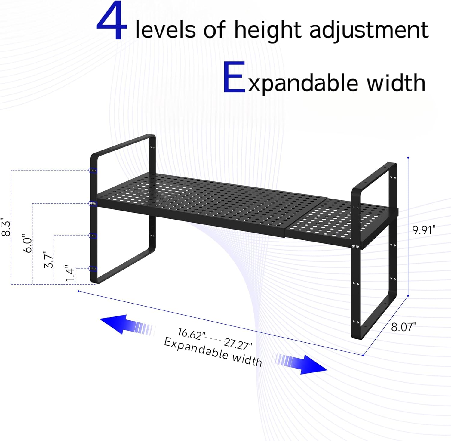 Store New Arrivals Add to Favorite View Feedback Contact Expandable Cabinet Shelf Organizers, Kitchen Small Stand Rack Organization for Tabletop Countertop Cupborad Pantry, Black 2 Pack Description Unit Count 2.0 Count Room Type Kitchen Weight capacity Maximum weight: 8E+1 Pounds Shelf Type Tiered Shelf Shape Rectangular Assembly Required Yes Item Package Quantity 2 Batteries required No Material Metal Mounting Type Tabletop Mount Furniture Finish Black Product Dimensions 10"D x 27"W x 8"H Item Weight 10.01 pounds Installation Type Countertop Color Black Product Name Cabinet Shelf Finish types Painted or Powder Coated Special Feature Expandable Weight Limit 8E+1 Pounds Finish Type Painted or Powder Coated Included Components Assembly Hardware Versatile and Customizable: Adjustable width (16.62-27.27") and height make this cabinet organizer fit any space, tailored to your unique storage needs Stackable Design: Maximize your storage by stacking multiple units on top of each other, creating additional levels for efficient organization Heavy-Duty Capacity: Built to last with sturdy construction, this shelf supports up to 80 lbs, perfect for storing even your heaviest kitchen items Quick and Easy Installation: Enjoy hassle-free setup with included tools, so you can organize your cabinets in no time Satisfaction Guaranteed: We stand behind our product! if anything is missing—your satisfaction is our priority Product Description Expandable width from 16.62" to 27.27" Stackable Design Create multiple shelving units to maximize your storage space! Height-adjustable This small shelf organizer provides three levels of height adjustment. Corner-strenthening Corner strenthening plates provide extra stability. Support rods Support rods in the back of shelf ensure high load capacity. Non-Slip Pads Non-slip pads prevent slipping. ABOUT US We offer the best prices around on high quality products. Our E-store includes media such as books, movies, music and games while offering electronics, toys, sporting apparel, clothing, tools, general home, garden items and more. SHIPPING We are always working hard to ensure your package arrives as soon as possible. Please understand that some factors like weather, high postal traffic, and the performance of shipping companies are outside of our control. We offer free shipping to the lower 48 states and ship within 2 business days of payment, usually sooner. We do not accept P.O. Boxes. Please provide a physical address. For shipping outside of the continental USA, we only use eBay's Global Shipping Program.The item is shipped to KY and then sent to the rest of the world. International customers are responsible for all duties and taxes. Continue to check out in order to calculate costs for shipping the item to your country. Messages regarding eBay's Global Shipping Program MUST be directed at eBay EXCLUSIVELY. RETURNS We offer a 30-Day Return Policy on items which you are not completely satisfied with. You have the option for a full-refund or an exchange of the item. No returns are available on items shipped outside of the USA. PAYMENT We accept PayPal. CONTACT US This page content is yet to come Please ad us to your favorite seller and visit again later Thank You CUSTOMER SATISFACTION We try our very best to make sure every customer is completely satisfied. If there's a problem, message us! We're happy to help. WE ACCEPT Copyright © 2021 AutoDS. | All Rights Reserved