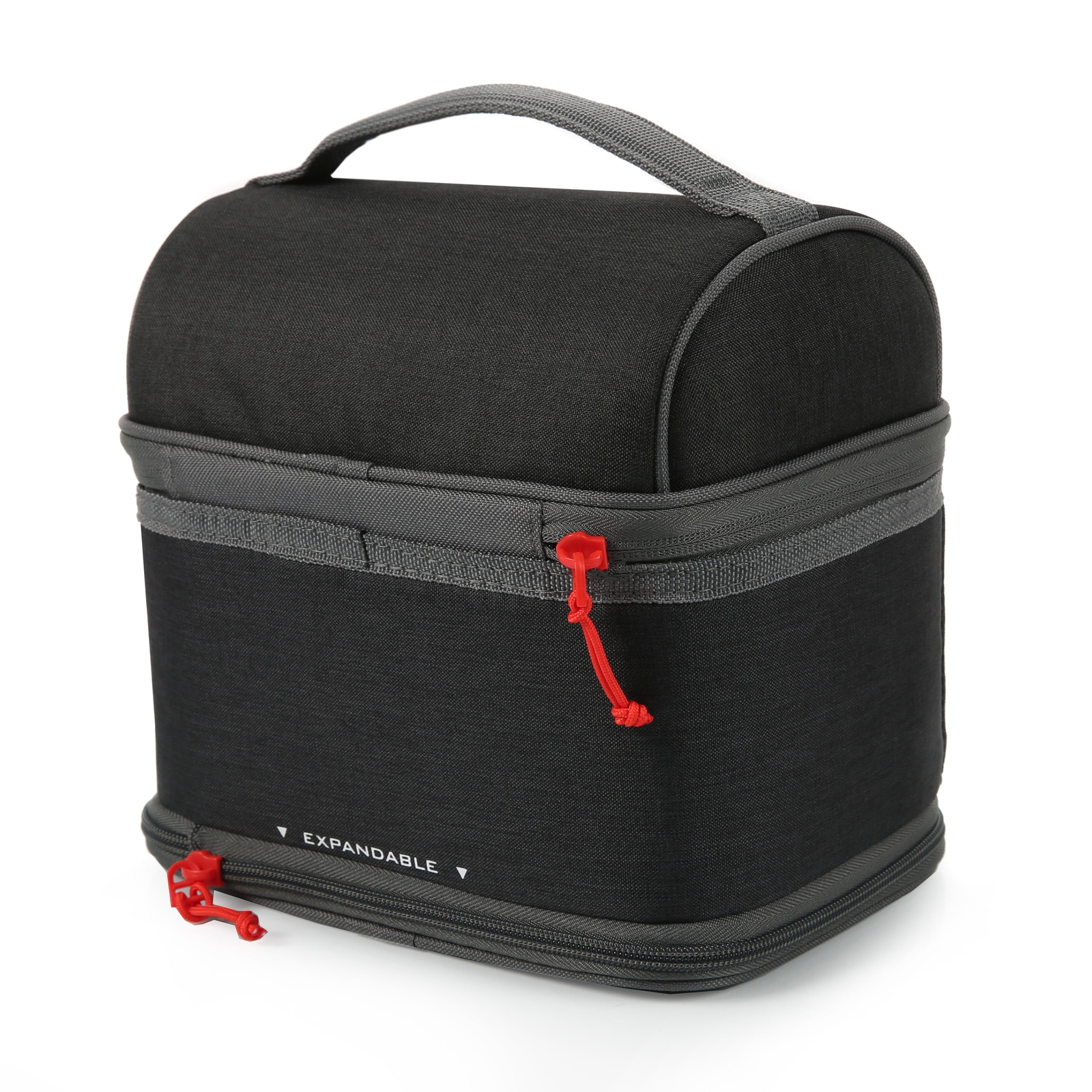 The Expandable Secret Bucket features two large compartments separated by a transparent interior divider and includes a high performance ice pack that enhances cold retention. If you want to carry taller items, just unzip the divider for more vertical space. The bucket also has an expandable bottom compartment for those days when you want to bring even more food. The interior of the bucket has high density thermal insulation to keep food and drinks cool and fresh, a leak proof bottom compartment and Ultra Safe easy clean lining with Microban to help protect against bacterial odors and stains. 2 Compartments separate drinks from food, hard from soft High density thermal insulation keeps contents cold Zippered, transparent compartment divider unzips to provide space for taller items Expandable bottom compartment for those days when you want to bring more food Leak proof bottom compartment means no more worries about food or liquids seeping out from the bottom of the pack Ultra Safe easy clean lining with Microban to help protect against bacterial odors and stains and make the lining easier to clean Carry handle High performance ice pack enhances cold retention Reusable lunch box