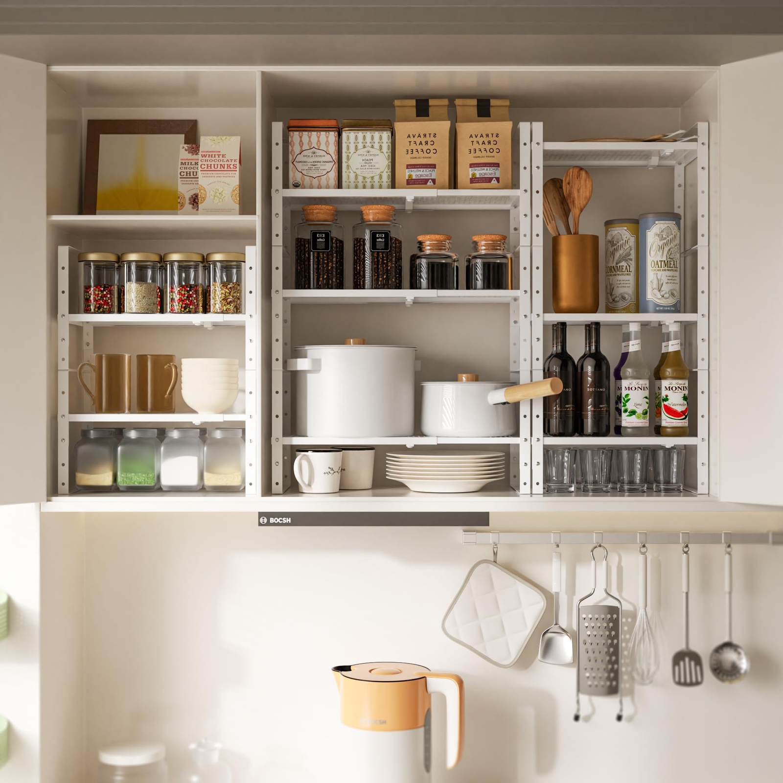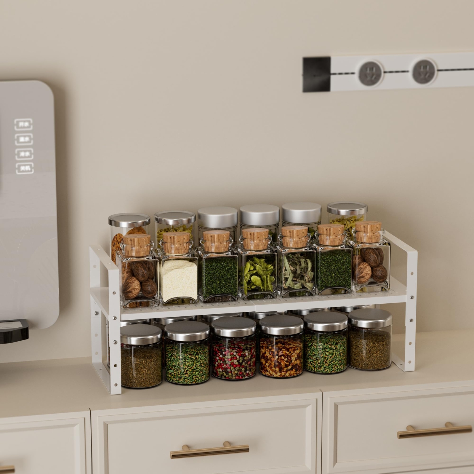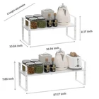 【Expandable and Stackable design】This cabinet shelf has expandable width and adjustable height,the measures are 8.11"/10.24"Dx16.54~27.17"Wx2.17~7.85"H,which can be freely adjusted according to the size as desired. 【Multifunctional】These cabinet shelves can be used individually or stack one to the other to become a 2 or 3 tiers shelves to organize your items. They are great organizers for your cabinet, pantry, cupboard, closet, drawer or counter top in kitchen, bathroom, bedroom and under the sink. With the hole design board, it can be a drying rack for dishes, bottles, plates. 【Sturdiness and Reliability】Made with heavy duty metal that built to last. With the well-finished coating on so won’t get rusty and smooth to the touch. The bottoms of the stand frame with non-slip pads attached so it will stay securely and won’t slip off the surface.Loading Capacity: 80lbs. 【Extra Space】These stackable cabinet shelves maximize storage efficiency, providing more spaces. The added storage space helps organization and tidiness. All the little bottles, tins, vials, pans and a myriad of other kitchen seasoning could go underneath, the middle or the top of the cabinet shelf, reaching with easily. 【Satisfaction Service】Manual and assembly parts includes in the package,Easy to Install. Please contact us if you have any questions.
