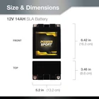 Cold Cranking amperes(CCA) 210A Dimensions: 5. 28(L) 3. 46(W) 6. 54(H) Sealed lead-acid (SLA) absorbed glass mat (AGM) Battery. Every battery is fully charged and tested before it leaves our warehouse. YTX14AH ATV Battery Fit For Arctic Cat 360cc, 400cc, 500cc, 650cc, BRP (CAN-AM) 200cc, Honda 200cc, Kawasaki 300cc, 220cc, 250cc, 360cc, 400cc, Polaris 570cc, 250cc, 325cc, 400cc, 425cc, 500cc, 450cc, 330cc, 335cc, Suzuki 250cc 280cc, 300cc, Yamaha 200cc, 225cc, 250cc, 350cc 230cc, 400cc. ETX14AH Motorcycle Battery For Bimota 900cc, Honda 650cc, 700cc, 750cc, 800cc, Kawasaki 800cc. UTV battery for Kawasaki 300cc, 400cc, Polaris 400cc, 500cc, 570cc. CTX14AH-BS Fit for snowmobile Arctic Cat 500cc, Polaris 544cc, 600cc.
