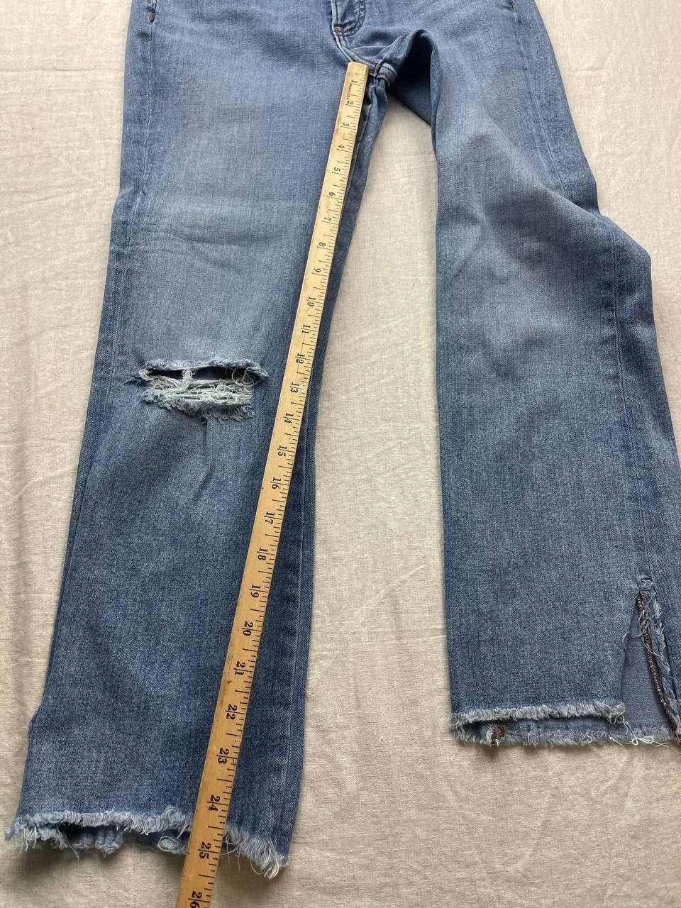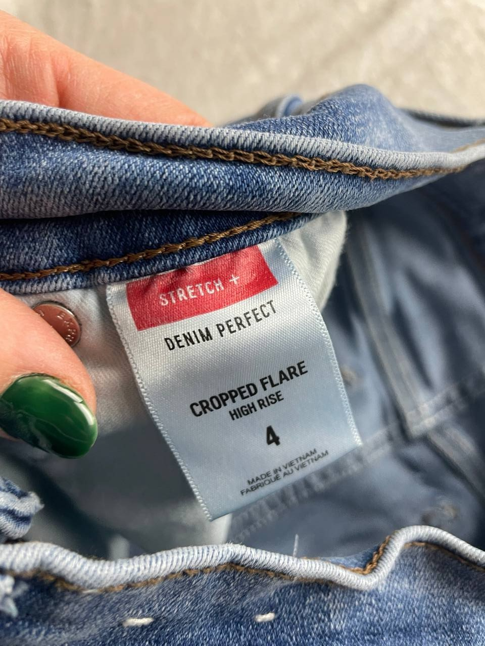 Express Jeans Womens Size 4 Blue Denim Distressed High Rise Cropped Flare Frayed Pre-owned, exact items on photos