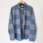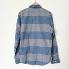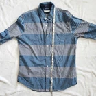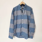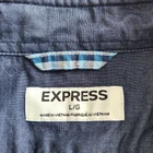 Express Men's Button Down Shirt Large Gingham Plaid Blue White Check Striped Express blue plaid check button down shirt in men's size large. - Gingham plaid pattern throughout in alternating stripes. - Shades of medium blue, navy blue, and white. - Pointed collar and long sleeves. Chest pocket with white stitching. - Buttons up the front, at collar points, and sleeve cuffs. - Express 2015. - Minor signs of wear, tiny faint discoloration on hanging loop inside the shirt. Not visible from exterior. Overall great condition. Great casual button down to wear alone or layer over any outfit. Perfect for spring and summer. ✦ lay flat measurements: chest: 22.5 in length: 30 in ✦ material: 100% cotton. vtg button up // collared shirt // windowpane grid // casual // dressy // grunge // punk // retro // fall // winter // flannel look // 90s y2k vibes // mens fashion // unisex // cabincore // gorpcore // western // skater // plaid shirt ✦ All orders ship out within 1-2 days! ✦