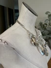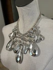Add a touch of glamour to your outfit with this stunning silver metal statement necklace from Express. The teardrop-shaped pendant and lobster closure make it easy to wear and secure. This fashion-forward piece is perfect for any occasion, whether it's a night out with friends or a special event. The necklace measures 15 inches in length and is made of durable acrylic material. The main stone color is also silver, giving it a cohesive and sophisticated look. Don't miss out on this must-have accessory for your jewelry collection. Length is 15 inches without the extender