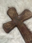 For Sale: Exquisite Early 1900's Mexican Ceramic and Metal Cross – A Timeless Treasure Step back into Mexico’s history with this remarkable piece of craftsmanship—a beautifully preserved ceramic and metal cross from the early 20th century. This unique artifact exudes an aura of reverence and artistry, making it a standout addition to any collection, sacred space, or vintage décor. Key Features: Authentic Early 1900s Design: The intricate details on this cross reflect the artistic finesse of its time, showcasing the harmonious blend of ceramic and metalwork. Exceptional Craftsmanship: The ceramic centerpiece is hand crafted with an aged patina. Perfect Size: Measuring approximately 12 inches in height, a size suitable for versatile wall mounting. Rich History: Likely used in a devotional setting, this ceramic cross carries the spirit of its era, making it more than just an object—it's a conversation starter and a historical artifact. Why This Cross Stands Out: Whether you're a collector of vintage religious artifacts, an interior designer seeking a unique focal piece, or simply someone who appreciates timeless beauty, this cross is a must-have. Its blend of materials and enduring charm makes it a piece that transcends trends, offering an authentic slice of history. Condition: Remarkably well-preserved for its age, with only minor wear that enhances its vintage character. The ceramic remains intact, solid and stable. Own a Piece of History Bring home this extraordinary cross and let it infuse your space with its historical elegance. Don’t miss the opportunity to own a piece of the past—one that’s as meaningful as it is beautiful. Act quickly—authentic pieces like this are rare and highly sought after!!