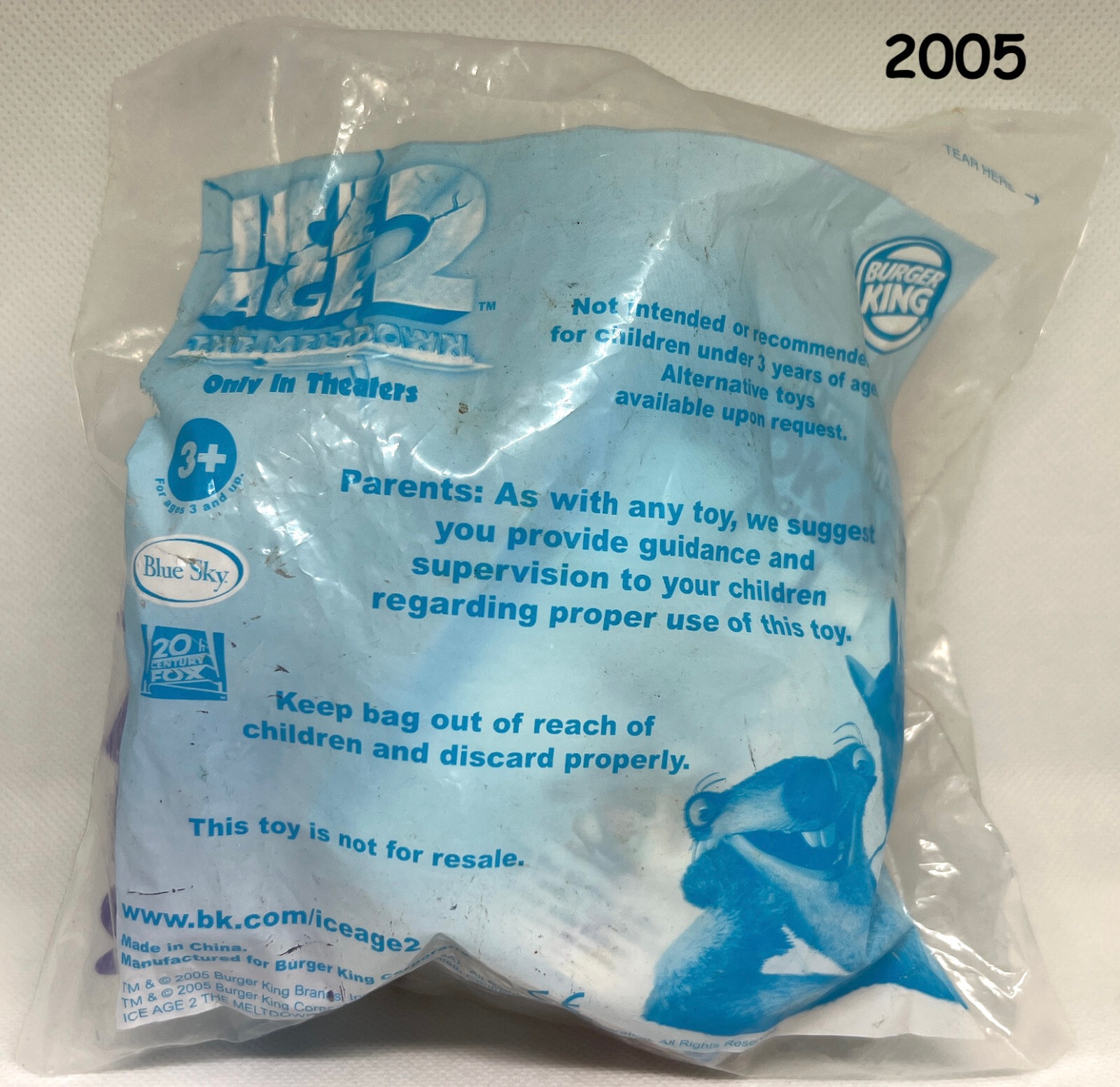 HEY YOU GUYSSS!!! From Burger Kings 2005 ICE AGE 2 the Melt Down movie promotion , itโs a New In Original Package (NIOP) EXQUISITE ELLIE toy. This rare & hard to find vintage collectable is 5โ long. It is great for appreciating, collecting, displaying, investing in, playing with and even be used as a ๐ Cake Topper, Decoration or Ornament. It is still in the ORIGINAL UNOPENED PLASTIC BAG. (Better buy him quick before he suffocates in there!) ๐ ***Please note: The original unopened 20 year old plastic does bag show some signs of wear; Please review the photos for condition carefully before purchasing. *** e b a y may add state sales tax to your final total depending on your location. Orders are sent well padded, tracked & delivery confirmed via USPS shipping & handling. Combined item $ hipping is your best value and $ave$ money on multiple item purchases! Most 2 nd items or more can be added for only an additional .35 or .50 cents each. To take full advantage of combined / discounted shipping for multiple item purchases, please add each item to your shopping cart before checking out. Click here to see all the Toys, Comics, Cards & other cool vintage stuff in my thomaszr e b a y store. Canโt find what you are looking for? Send me a message and if I have it I will list it for you. Thanks for l ๐ king; ENJOY! ๐