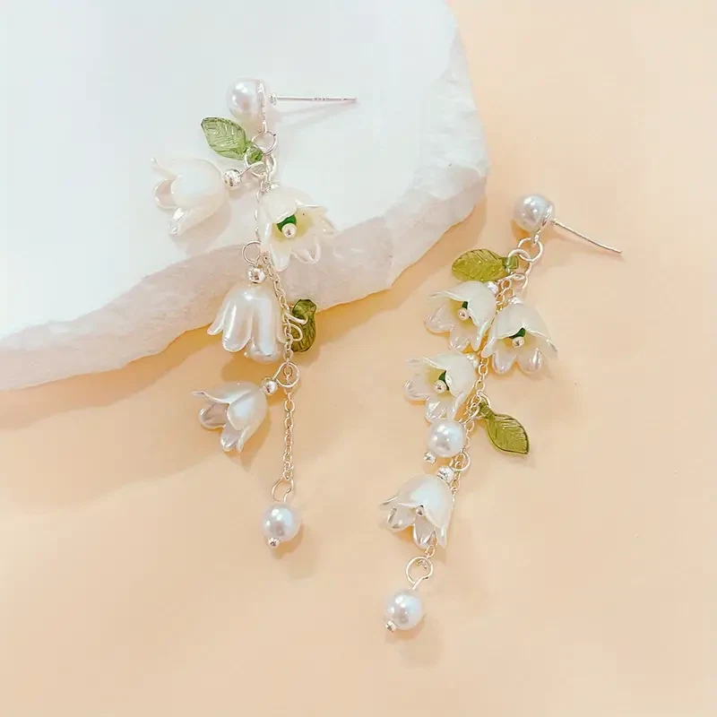 Exquisite Lily Of Valley Design Long Dangle Earrings Jewelry Vacation Gift Women