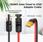 10AWG Solar Panel to XT60 Extension Cable EXCELLENT CONDUCTIVITY Solar to xt60 charge extension cable use heavy duty 10awg tinned copper wire which ensures good electrical conductivity,good durability and flexibility,providing stable current for your device. EASY TO INSTALL Plug and play,no additional installation tools required.You can easily separate the two solar connectors by pressing and holding the built-in lock. IP67 SOLAR PANEL CONNECTORS Solar connectors have waterproof and dustproof performance to prevent corrosion,increasing the feasibility of the solar panel extension cable to be used in harsh environment. WIDE APPLICATION Solar Generator Battery Pack Portable Power Station Foldable Solar Panels and ect. HIGH EFFICIENCY CHARGING CABLE The cable is made of 10AWG tinned copper wire,which minimizes power loss and improves charging efficiency. The shell is made of high quality PVC material,which is heat-resistant to 105°C. Resistant to weather and UV rays,ensuring that it can withstand the harsh environment of outdoor use. UPGRADED STRONG XT60 CONNECTOR XT60 Female Connector Sturdy&Durable Non-slip Design High Quality Higher Safety The integrated type XT60 connector has higher safety performance than the traditional separated type XT60 connector,which is more waterproof and firmer. This solar extension cable is used to connect solar panels and solar generators,suitable for all solar generator power stations,battery packs,and any devices with XT60 port.Widely used in outdoor RV,camping,travel,emergency etc.