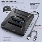 Features: Multi-functional Design: Our portable DVD player serves as a CD/DVD reader, burner, 4-port USB 3.0 hub, SD card reader, and TF card reader. High-Speed Read/Write: With USB 3.0 interface, it boasts a maximum 8x DVD read/write speed and a maximum 24x CD read/write speed, ensuring rapid data transfer. Convenient Connectivity: The external DVD drive is powered dir ectly via a USB 3.0 port, requiring no additional drivers. Simply plug it into your laptop or desktop PC for instant use. Wide Compatibility: Compatible with Windows 11/10/8/7, Linux, Mac OS, and other systems, our USB DVD drive is versatile, suitable for listening to music, watching movies, gaming, burning data, and installing software. Slim and Portable: The sleek and lightweight design makes it easy to carry, providing on-the-go convenience for use at home, in the office, or while traveling. Note: SD card and TF card are not used at the s ame tim e S pecification: Material:ABS Data interface:USB 3.0+TYPE-C Platform:Laptop, PC, MacBook Desktop Installation Method:Plug and Play Without Driver Hardware Interface:USB 3.0 Type A, USB Type C Optical Storage Write Speed:Max 24x CD / 8x DVD Special Feature:7 IN 1, Lightweight, Strong Error Correction Operating System:Windows XP/ 2003/ 2000/ Vista/ 7/ 8/ 10 /11, All versions Mac OS, Linux Package Included: 1 x External CD/DVD Drive 1 x USB Cable 1 x User Manual