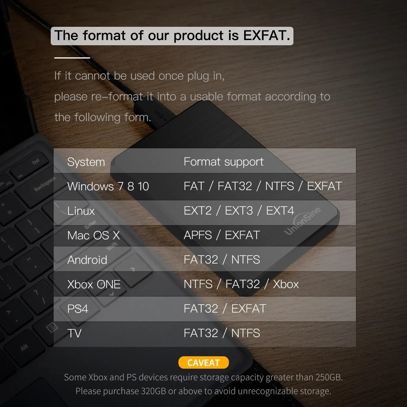UnionSine 2.5" Portable External Hard Drive USB 3.0 HDD 120GB 160GB 250GB 320GB 500GB 1TB – Ultra Slim Backup Storage for PC Laptop Mac MacBook, Plug & Play, Shockproof, Quiet 5400RPM, SATA 3.0, Compatible with Windows/Mac/Linux Gaming Console UnionSine 2.5" Portable External Hard Drive – Ultra-Slim USB 3.0 External HDD Available Capacities: 120GB / 160GB / 250GB / 320GB / 500GB / 1TB Model: HD2513 Interface: USB 3.0 (Backward compatible with USB 2.0) The UnionSine 2.5-inch portable hard drive provides fast, reliable, and secure extra storage for your important files. Whether you are backing up work documents, storing photos and videos, or expanding console and laptop storage, this compact HDD delivers dependable performance in a slim, stylish design that is easy to carry anywhere. Perfect for PC, Laptop, Mac, MacBook, Smart TV, PS4/Xbox (for media & compatible models) and more. ⭐ Key Features & Benefits USB 3.0 High-Speed Transfer – Up to 10× faster than USB 2.0 Huge Capacity Options – 120GB–1TB to suit every storage need Plug & Play – No driver or external power required Ultra-Slim & Lightweight – Perfect for travel, pockets, and bags Quiet 5400RPM Performance – Smooth, low-heat operation Shock-resistant casing – Better protection for your data Compatible with Windows, Mac OS, Linux Ideal for video, music, photo & document backup Durable SATA 3.0 drive mechanism CE / FCC / RoHS Certified for safety & reliability 📊 Technical Specifications Brand: UnionSine Model: HD2513 Drive Type: HDD – 2.5 Inch Portable External Speed: 5400RPM Cache: 8MB Interface: USB 3.0 (SATA 3.0 internal) Power: USB-powered – no extra adapter needed OS Support: Windows 11 / 10 / 8 / 7 / Vista / XP Mac OS Linux Capacities Offered: 120GB / 160GB / 250GB / 320GB / 500GB / 1TB 💼 What You Can Store Work & school documents Photos & albums 4K & HD videos Game recordings Music libraries Backup copies of important files No cloud fees – your data stays with you . 🙌 Why Buy From Us? ✔ 100% Genuine Brand-New Product ✔ Local Australian stock (where applicable) ✔ Fast dispatch & secure packaging ✔ 4.9★ customer satisfaction ✔ Friendly customer support ✔ High-quality tested drives We focus on value, reliability, and honest service . 🚚 Dispatch & Shipping Same-business-day or next-business-day dispatch Sent via Australia Post or other tracked courier Tracking number provided for every order Signature on delivery may be required for security Please ensure your address is correct before checkout. 🔁 Returns Policy We want you to shop with confidence. 30-day return period Item must be in original condition Replacement or refund available (conditions apply) If there is any problem, contact us first – we are happy to help. ⭐ Feedback Your positive feedback is very important to our small business. If you are satisfied, please leave 5-Star feedback in: Item as described Communication Shipping time If anything is not perfect, please message us before leaving feedback — we will resolve it quickly and professionally. 📦 Package Includes UnionSine 2.5" External Hard Drive USB 3.0 Cable User Guide