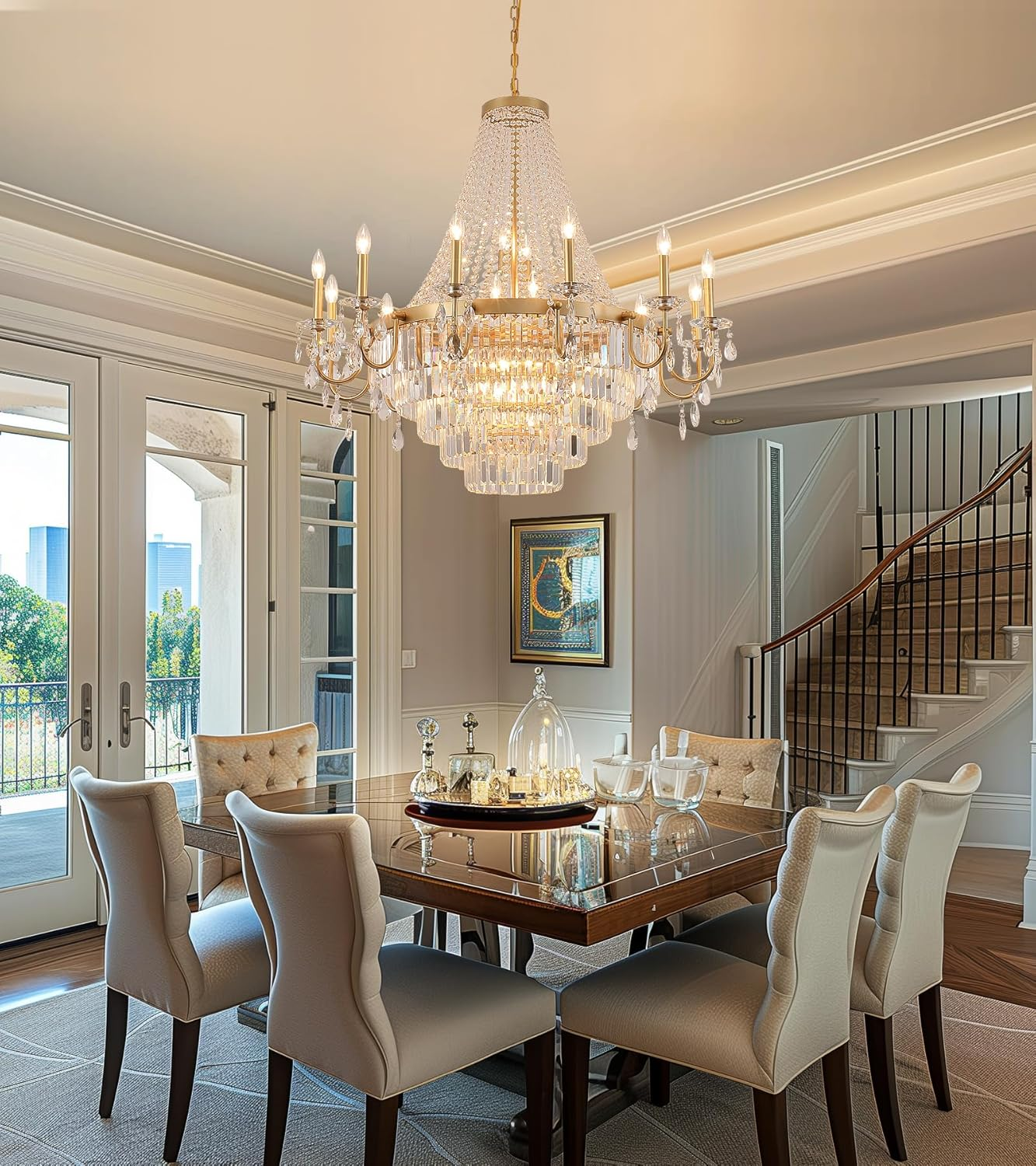 Store New Arrivals Add to Favorite View Feedback Contact Extra Large Gold Crystal Chandelier 40" 24-Light for High Ceilings Description Light Source Type Incandescent,LED Item model number MX-P2121-24GD Style Modern Number of Items 1 Power Source Corded Electric Number of Light Sources 24 Control Method Push Button Embellishment Crystal Theme Large Chandelier, Modern Crystal Chandelier Batteries Included? No Lighting Method Candle Specification Met UL Indoor/Outdoor Usage Indoor Unit Count 1.0 Count Room Type Living Room,Lobby,Foyer,Staircase,Hotel,Restaurant Assembly Required Yes Installation Type Flush Mount Material Iron and Crystal Efficiency 11.25 lumens per watt Switch Type Dimmer Light Output Maximum 10800 Lumens Model Name Extra Large Modern Crystal Chandelier Finish Type Brushed Specific Uses For Product Home,Hotel,Restaurant Included Components Crystals Fixture Type Removable Brightness 10800 lumen Set Name Extra Large Modern Crystal Chandelier Light Color White Water Resistance Level Not Water Resistant Batteries Required? No Warranty Type 2 Years Item Weight 113.8 pounds Light fixture form Chandelier Special Features Dimmable Special Feature Dimmable Part Number MX-P2121-24GD Shade Color Gold Mounting Type Ceiling Mount Color Gold-24 Wattage 960 watts Bulb Base E12 Shape Round Voltage 110 Volts Recommended Uses For Product home,Hotel Shade Material Glass Finish types Brushed Product Dimensions 40"L x 40"W x 107.3"H Size 40" Extra Large Crystal Chandelier Luxurious Design:This modern large crystal chandelier is designed with top grade clear k9 crystal and luxurious gold metal frame,the foyer high ceiling crystal chandelier with twenty-four E12 candle holders to provide enough light for the large space.Elegant crystal decor adds more high-end elements to your cozy home, creating stunning lighting effects. Size and Bulbs:This contemporary gold large chandelier is W40"and H 36.5"with adjustable metal chain.Living room crystal chandelier can be adjusted to maximum 47.3,by changing the length of the chain,it can be easily adapted to high ceiling or lower ceiling,perfectly fits on high ceiling or lower ceiling.This modern crystal chandelier includes dimmable feature,but only when you use dimmer switch and dimmable light bulbs together(Not Included).The large chandelier for the bulbs requirement,you will need 24 of the E12 based light bulbs,max 40-watt each(Not Included),by choosing different color temperature to get different lighting effect. Widly Used:This high ceiling chandelier is round and large,designed to be the focal point in any room,such as the dining room,living room,foyer,master bedroom,party,hotel,office,restaurant,large space or cafe shop. Big crystal chandelier pendant light for high ceiling adds a touch of sophistication and modern luxury style to living spaces. Easy To Install:This dining room crystal chandeliers is a breeze with the included hardware and instructions.Transform your living space effortlessly with the modern Crystal Chandelier and create a stunning focal point that will impress your guests and elevate the style and ambiance of your room. 【Professional Service】MEIXISUE is a factory specializing in the production and sale of high-quality lighting,and provides perfect after-sales service to all our customers.If you have any questions about our products or encounter any problems with installation, please check the order number and click "Contact Seller" to contact us.We will solve your problem within 24 hours! Product description Extra Large Crystal Chandelier Extra large crystal chandelier for high ceilings,modern style large size 40" 24-light round big pendant light fixture perfect for foyer,staircase,living room,hotel,restaurant. The video showcases the product in use. The video guides you through product setup. The video compares multiple products. The video shows the product being unpacked. Luxurious Contemporary Gold Extra Large Chandelier 24-Light D40 Inches This modern large crystal chandelier is designed with top grade clear k9 crystal and luxurious gold metal frame,the foyer high ceiling crystal chandelier with twenty-four E12 candle holders to provide enough light for the large space.Elegant crystal decor creating stunning lighting effects. TOP GRADE K9 CRYSTALS Material of Luxury Gold Chandeliers High Ceiling chandelier uses high-grade K9 chandelier crystal, which is clear and strong refraction. Each side of the crystal has complicated cutting surfaces. Crystal refract gorgeous lighting while the brilliant chandelier turns on, sparkling like diamonds. It will be a glam room décor in your house, creates endless beauty. 1 Living Room 2 Staircase 3 Dining Room 4 Restaurant 5 Foyer ABOUT US We’re committed to offering great deals on quality products you can trust. From home décor and garden essentials to tools, hardware, and pet accessories, there’s something for everyone at prices you’ll love. SHIPPING Orders ship directly from the USA for fast and reliable delivery. Most items ship within 1 business day and include free shipping to the lower 48 states. International orders are fulfilled through eBay’s Global Shipping Program. Simply proceed to checkout to view shipping costs, duties, and taxes for your country. FREE RETURNS We offer a 30-day return policy on items you are not completely satisfied with. You may choose a full refund or an exchange.. CUSTOMER SATISFACTION We do everything we can to ensure every customer is fully satisfied. If something is not right, send us a message and we will take care of it quickly.