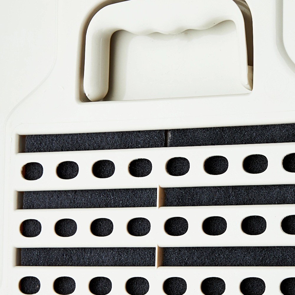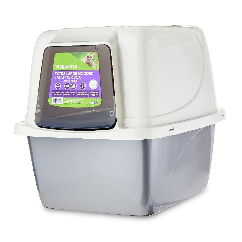 With our Extra Large Hooded Cat Litter Box, not only will your cat feel more fortable as they tend to their business, but your home will experience the benefits as well. pared to your cats usual litter box, the covered design helps your cat feel a higher sense of protection as they let their guard down as well as it helps keep their business hidden away and out of sight. Inside is a filtering system for air purification to keep any odors to a minimum so both you and your cat can breathe easy. The box itself is free and helps control litter mess to a clean-kept environment for yourself as well as your cat. Keep your home and your cat happy by replacing your litter box with this Extra Large Hooded Cat Litter Box. Help your pets live the ! Our products are specially crafted with one goal in mind, seeing your pet at its very best. With a variety of offerings designed to keep animals healthy, happy and energized, stands out as the brand that truly puts your pet first. If for any reason you or your pet don’t love this product, we’ll replace it or give you your money back. For questions, 1-877-307-2192 or visit .. Extra Large Hooded Cat Litter Box Covered air purifying litter box Dimensions: 21.75" x 17.75" x 18.125" Cover features a non-flexible build with a hinged door for your cat to slip easily in and out through Air purification system works by filtering the air inside of the box Helps control litter mess and odor free Vet remends 2 pans per 1 cat