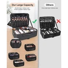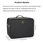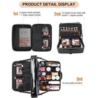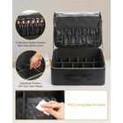Extra Size:The item size is 42.5* 31cm*16.7cm/16.73*12.2*6.57inch.It’s a plus size/extra larger makeup organizer bag.Fitting for professional artist such as makeup,hairdressing,manicuring and tattooing. DOUBLE LAYERS: The bag have enough space to store the cosmetic in need. The first layer have three elastic slots and two small zipper pocket, a large zipper pocket. The elastic slots can store boxes like nail cipper and others. The small zipper pocket can store small flat things like facial mask and the large can store a big eyeshadow palette. The second layer have 12 brush slots and a hidden zipper pocket. Brush slots used to store makeup brushes and the hidden pocket used to store flat things. The main compartment can store all size of makeups and cosmetics. ADJUSTABLE DIVIDERS: There have two different dividers, high and low. The dividers can let you easy classify your cosmetics and tools. The higher one can let you easy store bottles, and the lower one can let you access the lipsticks more easier. SPECIAL BRUSH SLOTS: The brush slots used the elasticity one. They can suitable for any shape and any type of brushes. In normal time, each one can store a big brush and two small brushes. The cover can protect the head of brushes avoid impact damage. The elastic slots also can decrease the mobility of things inside to avoid damage. ADVANCE MATERIALS: The extra large makeup bag used high quality materials. lockable metal SBS brand zipper, water-resistant and dust-resistant PU leather and lining-nylon. All materials want to provide the best service to customer. MULTIFUNCTIONAL MAKEUP ARTIST BOX PERFECT FOR ANY OCCASIONS: It can be used as Personal makeup case organizer , professional travel makeup artist box, as handbag with a belt to carry on the shoulder, and as makeup trolley case.