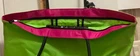 The product is an Extra Large Nylon Zippered Beach Bag in Green color with a black handle/strap. It is designed for women and includes a space for a water bottle. The dimensions are approximately 24 x 17 x 7 inches, making it spacious for carrying beach essentials. The brand associated with this bag is Beach Basics.