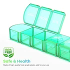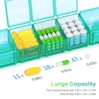 XL Large Pill Organizer 7 Day - You will never forget to take pills in time. Make your pills or supplements easy to recover thanks to the large weekly pill container. Why do you need a Large weekly pill holder? - It is necessary to fill many pills in one compartment. - Remember to take the right medication and the right dose at the right time. - Prevent taking the wrong medication or skipping doses. - Taking pills more consistently make the patient feel better, the assistant also will have complete peace of mind! Large compartments to fit all pills and supplements This pill holder has plenty of room to fill and sort all your pills for the whole week. Perfect for those taking them once a day and Long Vacation! Labels are Super Large and visible for elders Unique and thoughtful large font design,easy to read for elders and myopia. Specification Material: High quality BPA free and food grade PP Whole Pill Case Size: 9.53" x 1.81" x 1.08" Daily Pill Box Size: 1.24" x 1.54" x 0.79" Maintenance and Care 1. Wash the pill organizer prior to first use. 2. After the first use, only wash the medicine organizer with mild soapy water. 3. Dry the pill dispenser before storing anything. CAUTION: - DO NOT wash the pill container with a dishwasher. - Keep the pill cases out of reach of little boys / girls / pets. XL Large Capacity Pill Organizer - Big enough to accommodate your daily supplements ( 11 fish oils / 18 capsules ) Seals Tight - The pill container is easy to open, easy to fill and the top stays closed, thus no spills. Good Build Quality - Our medicine organizers are very sturdy, look great, and it does what it needs to do. BPA FREE - This pill dispenser is made of high grade & food grade plastic, safe for medical use. BPA free, odor free. Whole pill organzier size : 9.53" x 1.81" x 1.08". Each daily box size:1.24" x 1.54" x 0.79".