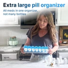 7 Times More Convenient - Unlike others our daily pill organizer 2 times a day is a convenient medicine organizer that can be detached. You can easily separate the compartments and bring some with you on the road without taking a lot of room in your bag Reliable Lock – It’s easy to open this pill holder when retrieving pills. The locking system also ensures that your pills will not spill out when the pill box vitamin case is tossed around in your bag +50% More Pills - This large pill organizer comes with compartments that are big of containing more pills than other AM PM pill organizer holders. Each compartment can store 18 fish oil / 45 capsules / 30 vitamins Unique Printing & Transparent Lids - The date is printed by UV tech so the silk print can be used many times and You can check and see your pills in our pill box organizer without opening the lids Ergonomic design - Our jumbo pill case is ideal for people with arthritis, carpal tunnel and other problems with hand mobility