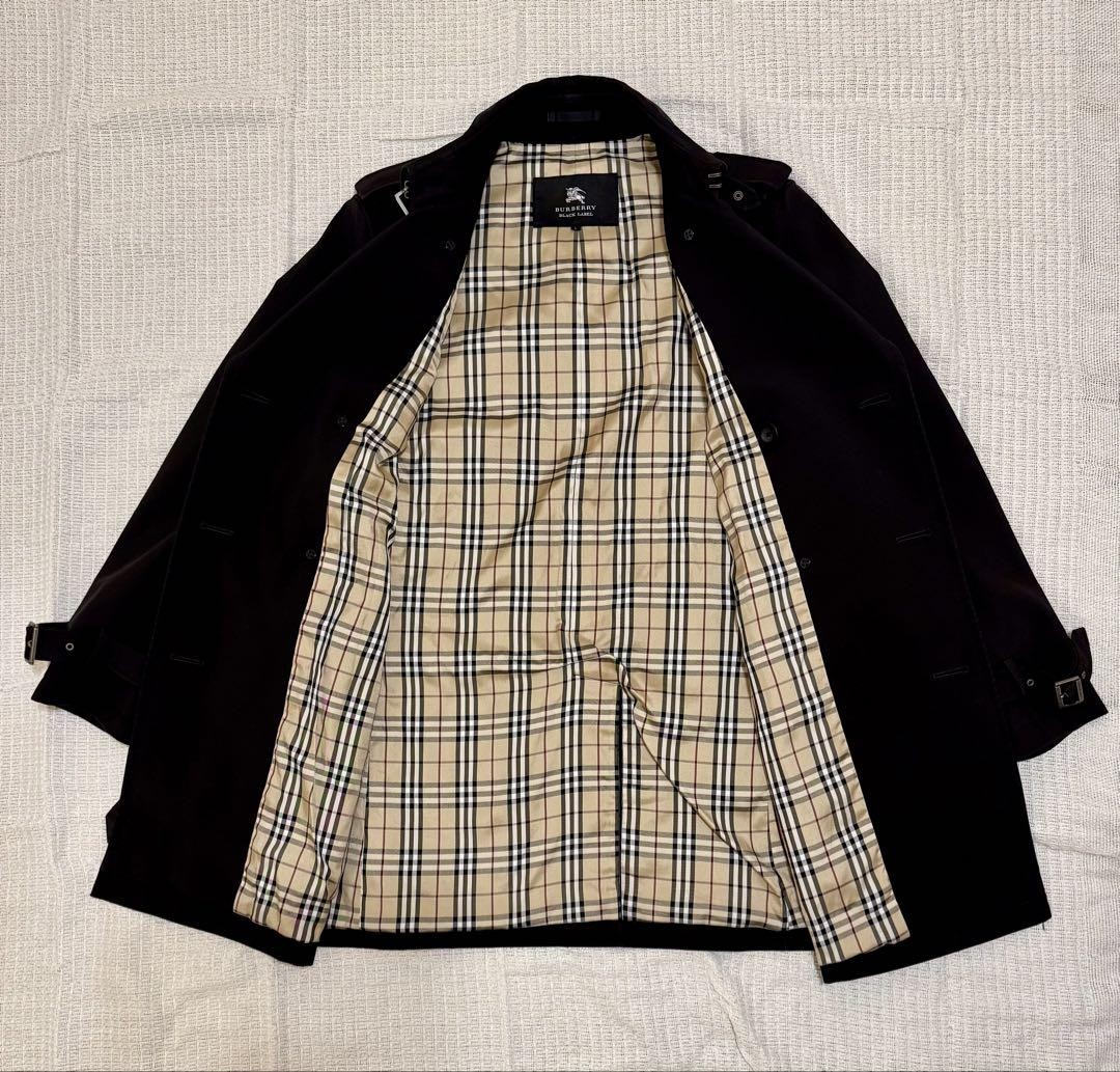 This Burberry Black Label trench coat is a timeless steal! The classic black design with a belt fits perfectly (size L) and looks brand new—no stains, tears, or fading. Shoulder 18.5", sleeve 24.4", length 33". Minimal wear, excellent condition for pre-owned. Feels luxurious and stylish, great for upgrading your wardrobe. Highly recommend for a high-end look without the full price!