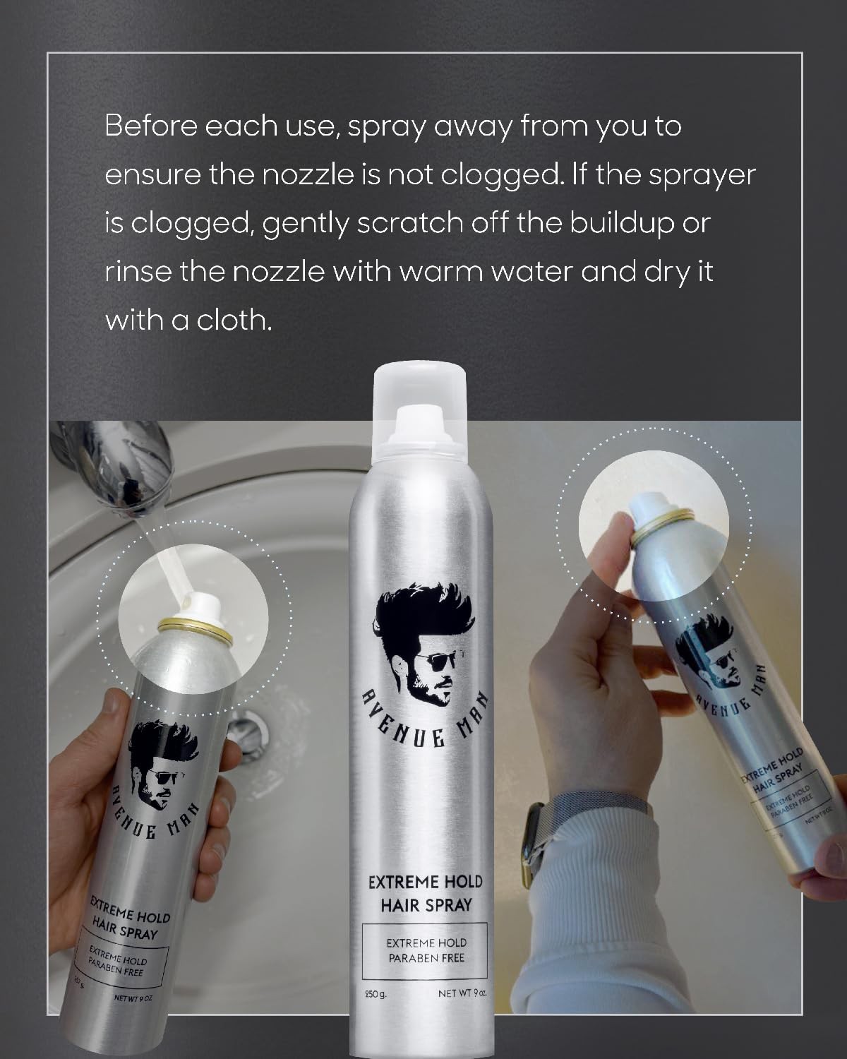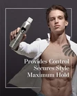 Looking for hair styling products that are natural and healthy? hair products are specifically designed to make handsome, MASCULINE hairstyles for men with short, medium, or long hair that hold all day long and create a winning style. Three EXCLUSIVE features of Extreme Hold Hair Spray for Men: SECURE your look: Extreme Hold Hair Spray provides unmatched control over your hair, fixing any loose strands or out of control frizz with a few sprays. Maintain your look all day long with our strongest hold hairspray. HAIR STYLING FORMULA WITH HERBAL EXTRACTS A paraben-free formula that provides a powerful defense against the elements. The all-natural ingredients in our hair spray will help to prevent additional damage to your hair. CREATED and MANUFACTURED in PORTUGAL by natural hair product specialists with years of experience, Extreme Hold Hair Spray comes in MASCULINE, efficiently designed packaging that was created for hair salons and for the general public. This great hair styling product will help you get your dream job, succeed in business, attract your crush and anything else you are trying to achieve. Order our Extreme Hold Hair Spray for men NOW and enjoy a perfect hairstyle all day long. Extreme Hold for All-Day Control – Keep your hairstyle locked in place no matter what the day throws at you. Our extreme hold hairspray for men provides long-lasting structure, volume, and definition—perfect for styling that needs to stay put through wind, humidity, and movement Fast-Drying, No-Stick Formula – This Mens Hair Spray Extra Hold delivers maximum control with a lightweight, quick-drying mist that won’t leave hair sticky, stiff, or crunchy. It sets instantly, keeping your style locked in place while maintaining a natural, weightless feel—perfect for daily styling Nourishing Herbal Extracts for Hair Health – Our Men Hair Spray is infused with lemon peel, mallow flower, peptides, and plant proteins to not only style but also strengthen your hair. It helps combat frizz, dryness, and damage while keeping hair looking healthy and full. UV & Color Protection for Long-Lasting Shine – Protect your hair from sun damage, color fading, and environmental stressors. Our professional-grade formula mens hairspray extreme hold blocks humidity, fights frizz, and keeps your hair looking vibrant and fresh all day Designed in New York – Premium Quality & Expert Craftsmanship – Crafted in the USA with precision and care, this paraben-free, professional styling men's hairspray delivers extreme hold without harsh chemicals. Engineered for men who demand flawless style, long-lasting control, and superior hair care in one formula