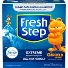 Fresh Step® Extreme Clumping Cat Litter is formulated with the power of Febreze in Mountain Spring scent to destroy extreme litter box odors. This limited edition Garfield pack has a low dust litter formula with Ammonia Block Technology that prevents bacterial odor growth on the litter and blocks urine odors, leaving behind a Mountain Spring scent. ClumpLock® technology in this litter quickly absorbs liquids while trapping odors on contact to form tight clumps and makes scooping fast and easy. This low dust cat litter is designed for cleaner surfaces and with your cat’s health and happiness in mind. To refresh your litter box, add more Fresh Step® scented cat litter. Keep your cat paws and floors purrfectly clean with this low dust formula. Certain trademarks used under license from Procter & Gamble Company or its affiliates. 25 Pound box. On Sep 9, 2024 at 18:36:48 PDT, seller added the following information: