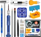 About this item 【Watch repair tool kit】- JOREST watch repair tool kit contains common tools required for repairing watches, suitable for adjusting and replacing watch straps, opening watch covers, replacing watch batteries, gaskets, etc., and has detailed operations Manual to help you solve watch problems at home and save expensive repair costs. 【Adjust the strap】- Metal watch band link remover, watch band holder, pin punches, double-headed hammer and spring bar tool with scale are used to replace various watch straps, adjust the length of the strap to fit your wrist.We are equipped with 15PCS spare needle to improve the service life of the tool, suitable for pin punch and metal watch band link remover. 【Suitable for different watch covers】- Watch back case opener is used for watch cases with grooves;watch case opening pry is used for the watch case with a pry opening;Screwdriver is used for watch case fixed by screws;tweezer is used to remove the battery.The use range of the watch back case opener is 15-60mm, and the drill bit spacing is set by rolling the adjusting wheel to fit the groove of your watch back. 【Five-in-one watch screwdriver】- Five types of screwdriver bits are suitable for many situations: watch battery fixing screws, watch case screws, watchband screws, and can also be used for glasses screws. The cover at the end of the screwdriver can be opened, and the inside is hollow for storing other screwdriver bits. 【The purpose of the watch case holder】 - The watch case holder can be used with other tools in the kit to help fix the watch and reduce the risk of sliding and scratching the watch. It is suitable for watches of various sizes, and can be used for watches with a diameter of up to 50mm.