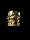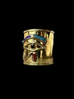 Discover the mystique of ancient Egypt with this exquisite Eye of Horus cuff bracelet. Crafted with meticulous attention to detail, it features the iconic Eye of Horus / Eye of RA design, known for its protective and healing properties. The combination of rich historical significance and timeless style makes this bracelet a truly special piece. Adorned with a main stone that complements the gold hue of the brass material, the bracelet exudes an air of sophistication and artistry. It is a versatile accessory that suits various occasions, from casual gatherings to more formal celebrations. This piece is fully customizable to fit your unique preferences and is an ideal choice for those who appreciate the beauty and culture of ancient Egypt.