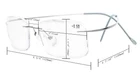 PRODUCTS DIMENSION - Frame material: metal,Lens width: 2"(51mm),Frame width: 4 3/4"(120mm),Lens height: 1 3/16" (30mm),Bridge (DBL): 3/4"(20mm),Temple length: 4 7/10" (120mm),Spring hinge:No,Lenses: Aspheric,Head size: Narrow to Medium. EYEKEPPER TITANIUM RIMLESS READING GLASSES EYEKEPPER READING GLASSES - included a microfiber cloth and hard zipper case,There are no hinges at the edge of the lenses, just bent wires from the side to go to your ears.very very lightweight. QUALITY TITANIUM FRAME - FDA Registered Reading Glasses and Eyewear In case any broken problem happens, contact the seller of Eyekepper without hesitation to solve the problem until satisfaction. Eyekepper provides lifetime after sale service for all Eyekepper reading glasses. Customers can return and get refunded for any reason. You have no risk to try